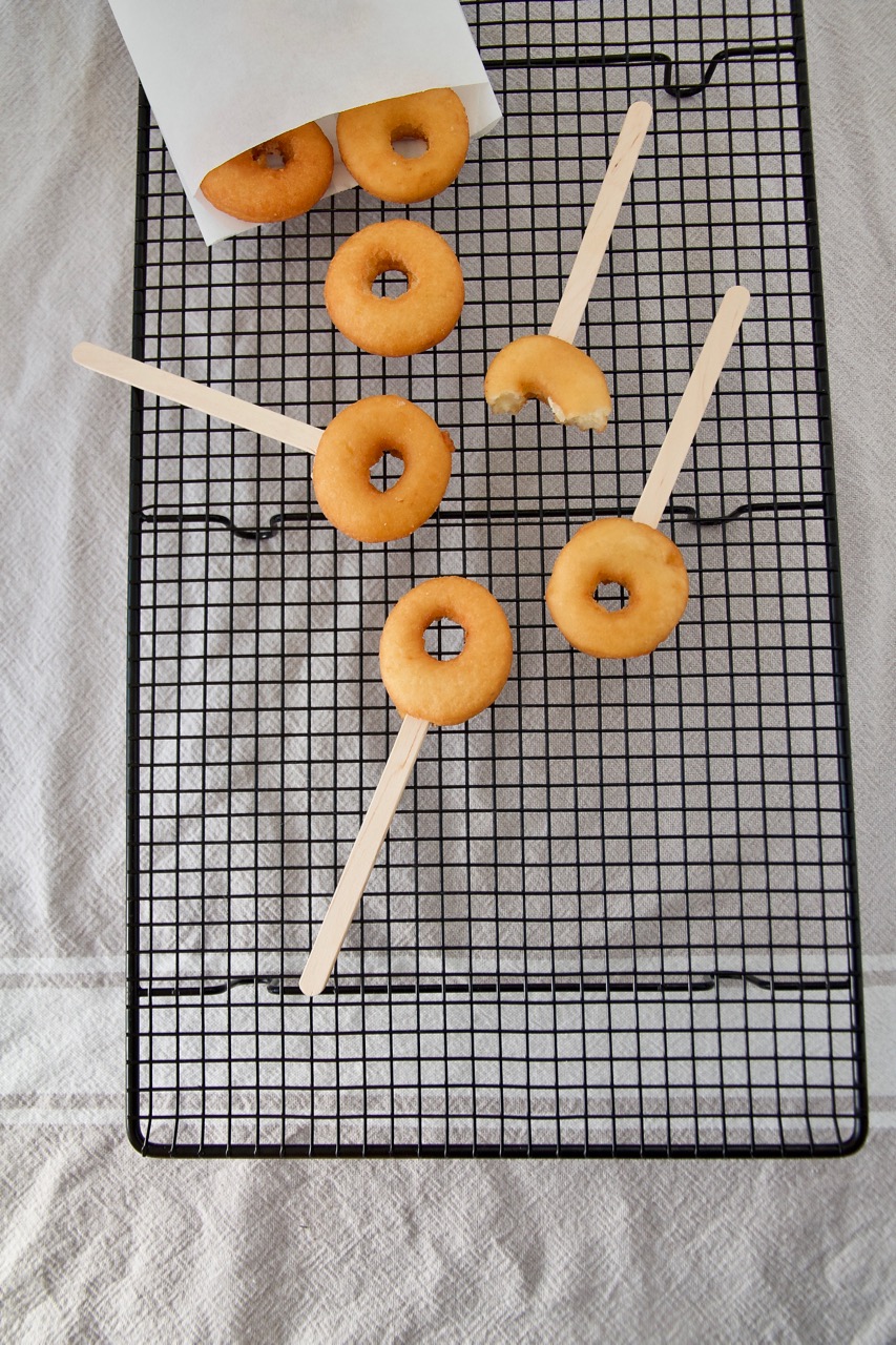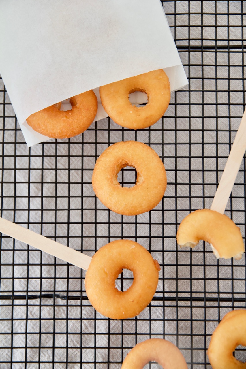 Die Mini Donuts kommen bei uns regelmässig auf den Tisch, ob Geburtstage, Fasching oder an Ramadan, sie passen einfach für jeden Anlass. Dem einen Gast reicht ein Mini Donut und andere nehmen gleich mehrere, weil sie einfach zu köstlich sind. Klebrige Finger Ade! Für Kindergeburtstage mache ich gerne kleine Donut Cake Pops, einfach einen Eisstiel* in die Mitte der Donuts stecken und schon sind sie fertig die kleinen Leckereien. Auch die kleinen ausgestochenen Innenkreise backe ich zu kleinen runden Bälle aus. Wenn sich Gäste kurzfristig anmelden sind sie super schnell gemacht und die Zutaten hat sowieso jeder Zuhause. So machst du deine Gäste ganz einfach glücklich.