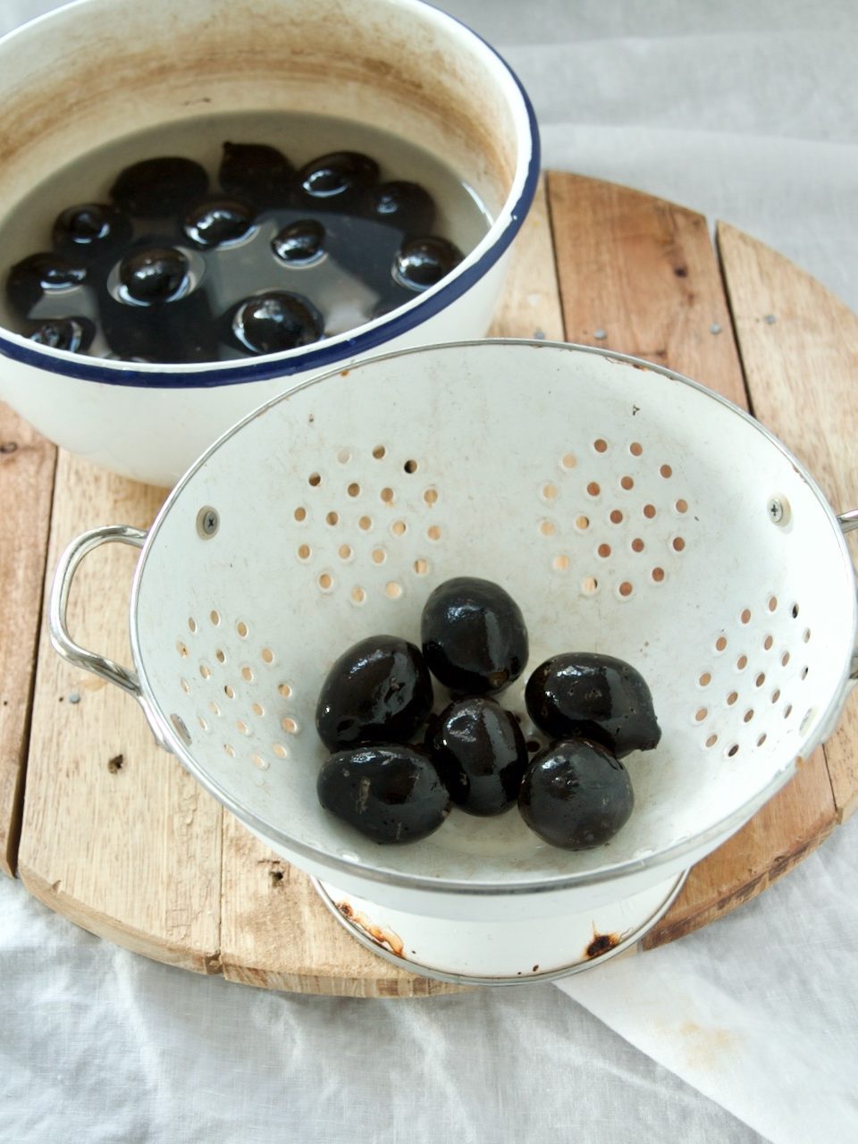 In der ersten Woche färbt sich das Wasser schnell braun und sollte 2x täglich gewechselt werden. Dabei auch die Gefässe und die Nüsse selber unter klarem kalten Wasser gründlich abbrausen. Ab der zweiten Woche reicht es nur noch 1x täglich das Wasser zu wechseln. Durch das Wässern lösen sich die Gerbstoffe und die Walnüsse verlieren somit ihre Bitterstoffe. Meine sind nach 3 Wochen erst rundherum schwarz geworden, dann habe ich die schwarzen Nüsse in Zuckersirup eingekocht. Sie sollten für mindestens 6 Monate durchziehen, die Liebhaber lassen schwarze Nüsse sogar bis zu zwei Jahre reifen. Die Herstellung ist daher etwas zeitaufwendig, aber total easy und der Aufwand lohnt sich wirklich.