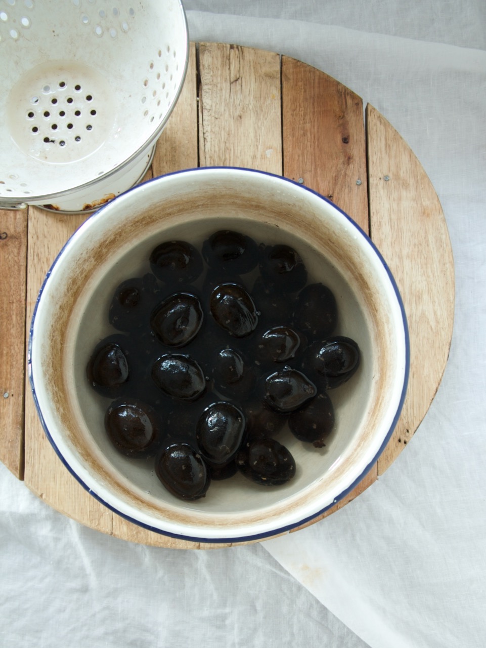 Zum Schluss die grünen Walnüsse noch einmal mit kochendem Wasser übergiessen, nach etwa zehn Minuten in ein Küchensieb geben und mit kaltem Wasser abschrecken. So verschwinden die letzten Reste der Gerbsäure.