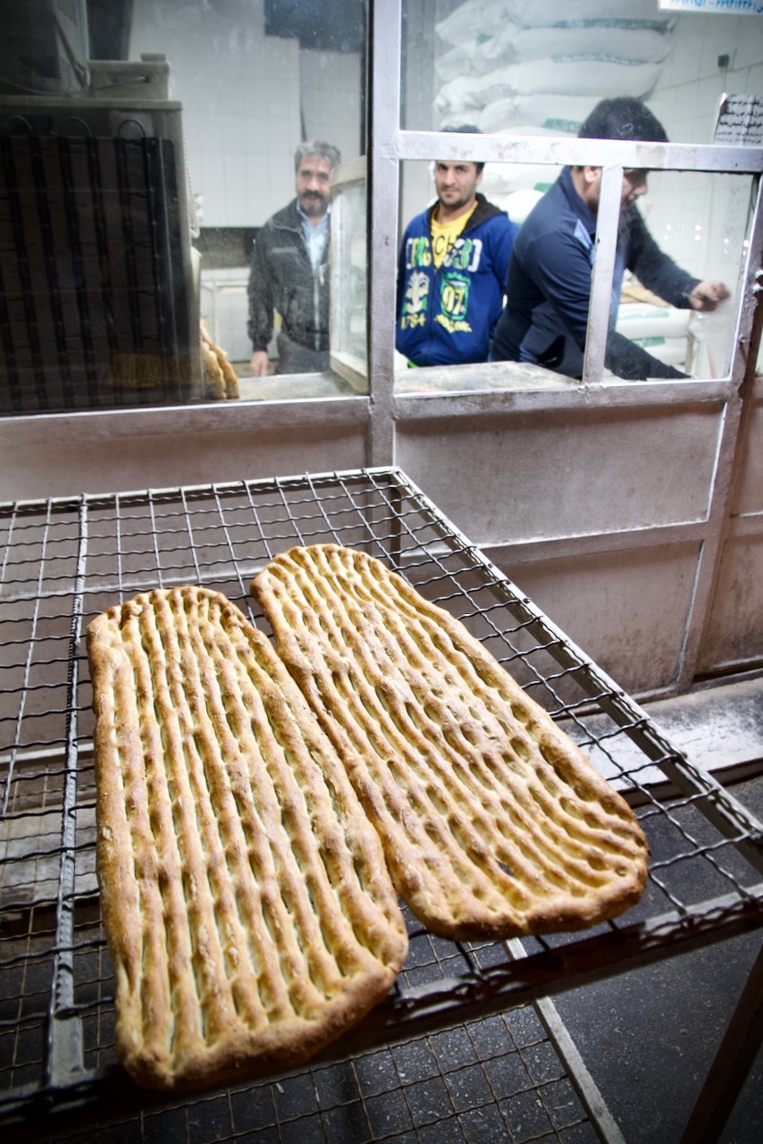 Wenn du eine Reise nach Persien planst, dann solltest du auf jeden Fall einen Noonvah – eine persische Bäckerei aufsuchen. Das Brot wird morgens, mittags und abends ganz frisch und direkt vor deinen Augen gebacken. Jede Bäckerei ist immer nur auf eine Sorte Brot spezialisiert und stellt diese im Tanoor einem Steinofen her. Wenn du zum Noonvah gehst wundere dich nicht, dass es zwei Schlangen gibt. Eine Schlange ist für die, die nur ein Brot kaufen wollen, diese ist in der Regel sehr kurz. Wer 2 Brote oder mehr kaufen will stellt sich in der 2. Schlange an und sollte sich auf eine längere Wartezeit einstellen, denn es ist ganz normal dass viele bis zu 10 Brote bestellen. Mein Bruder und ich haben uns oft den Spass gemacht uns in zwei Schlangen gleichzeitig anzustellen und wenn er sein Brot schon längst hatte und ich noch in der langen Schlange anstand, kam er mit dem frisch gebackenem Brot zu mir und wir haben so die Wartezeit mit dem Verzehr des warmen Brotes überbrückt. Es gibt 4 verschiedene traditionelle Brotsorten in Persien.