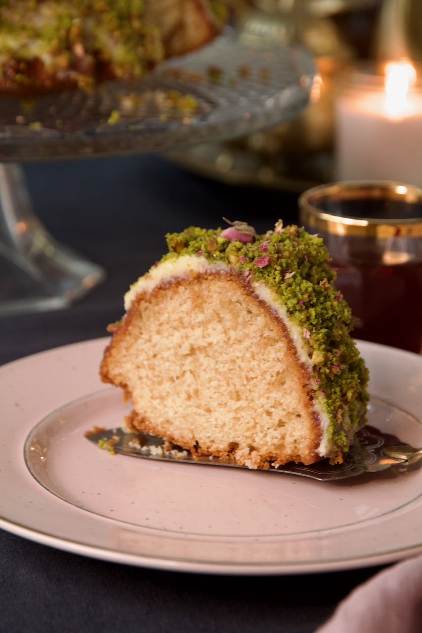 Deine Küche wird dann nach einer Mischung aus Gewürzen und blumigen Düften duften, als wäre sie einem orientalischen Märchen entsprungen. Eine himmlische Buttercreme mit Rosenwasser umschmeichelt den Gugelhupf, der mit gemahlenen Pistazien und Rosenblütenblättern verziert wird. So bleibt der Kuchen schön saftig und schmeckt einfach verführerisch. Mein orientalischer Gugelhupf sieht nicht nur fantastisch aus, sondern ist auch ein wahres Geschmackserlebnis. Auf deiner Kuchentafel wird er garantiert zum Blickfang!