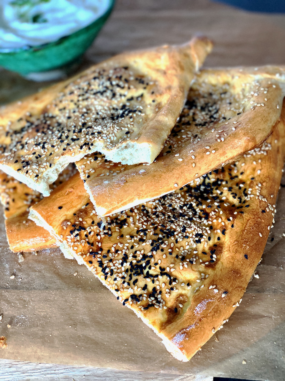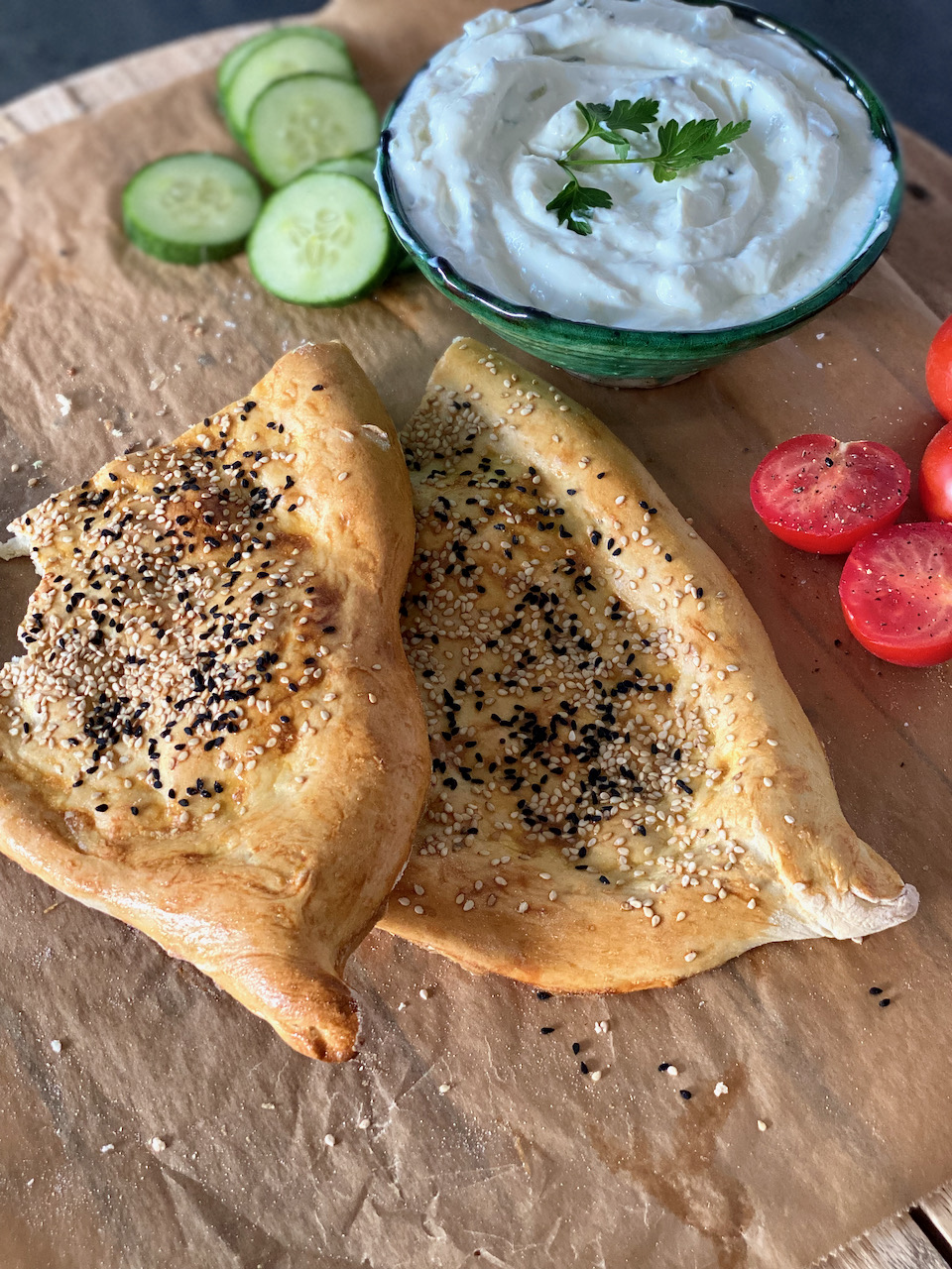 Dazu passen sehr gut Hummus und diverse Dips, wie z. B. Auberginen-Dip, Kräuter-Feta-Dip mit Walnüssen oder Adasi- Linsen-Aufstrich oder ein leckeres Joghurt-Dip mit Gurken.