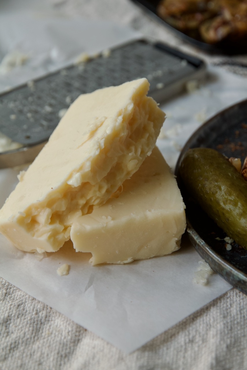 Käse reiben und auf die oberen Hälften des Brotes streuen.