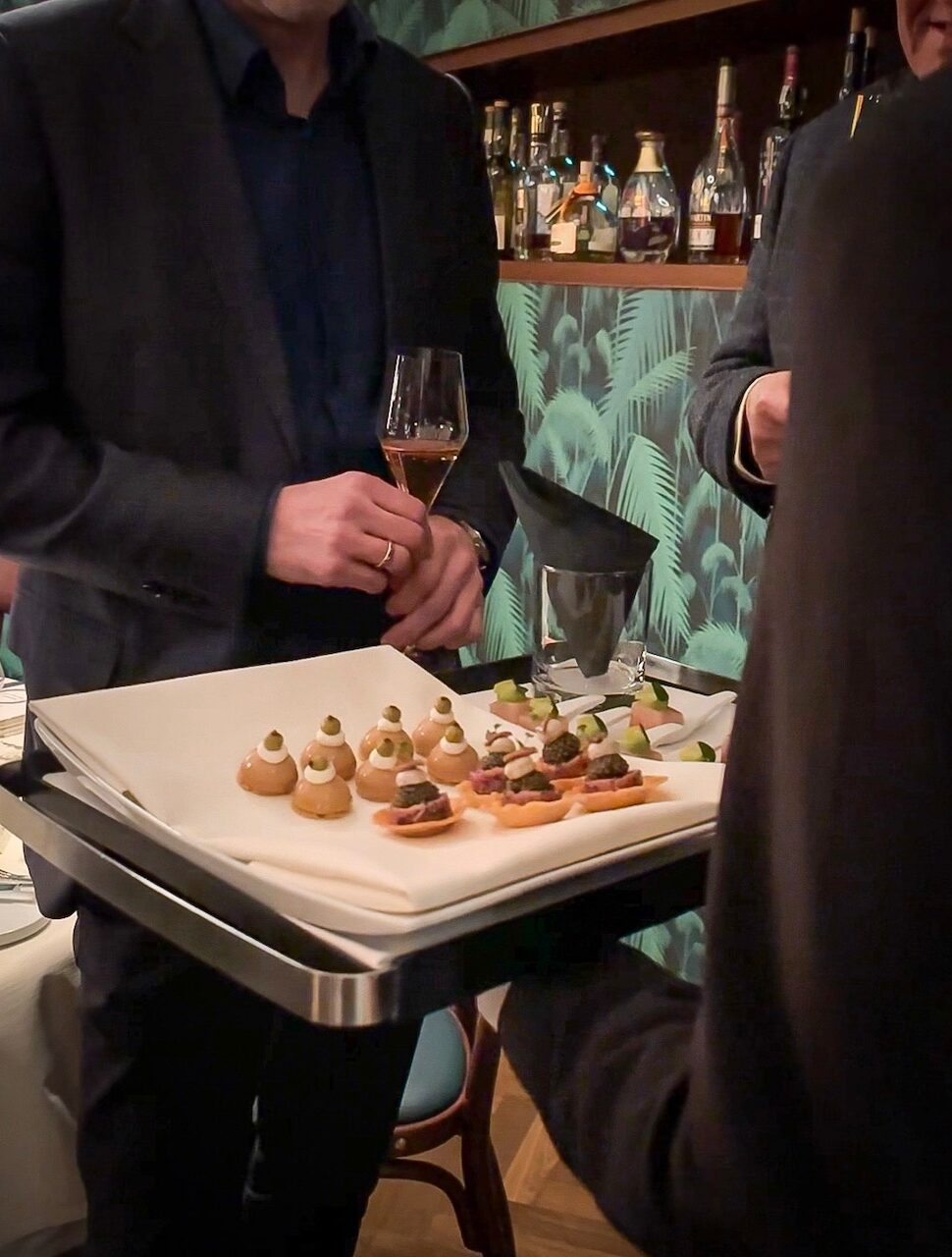 Zur Einstimmung wurde ein edler AYALA Champagne gereicht – feinperlig, elegant und genau das Richtige, um den Abend stilvoll zu eröffnen. Dazu gab’s eine Auswahl an raffiniertem Fingerfood, das nicht nur Appetit machte, sondern echtes Staunen auslöste. Jeder Happen war wie eine kleine Reise – überraschend, durchdacht und voller Geschmack.