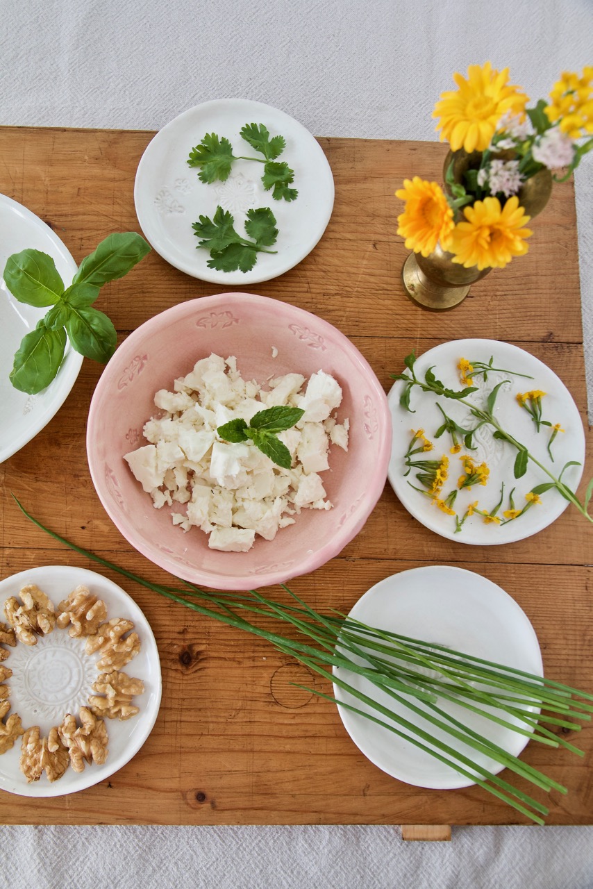 ZUTATEN FÜR SABZI KHORDAN DIP – KRÄUTER-FETA-DIP MIT WALNÜSSEN
