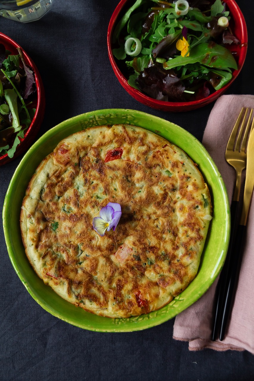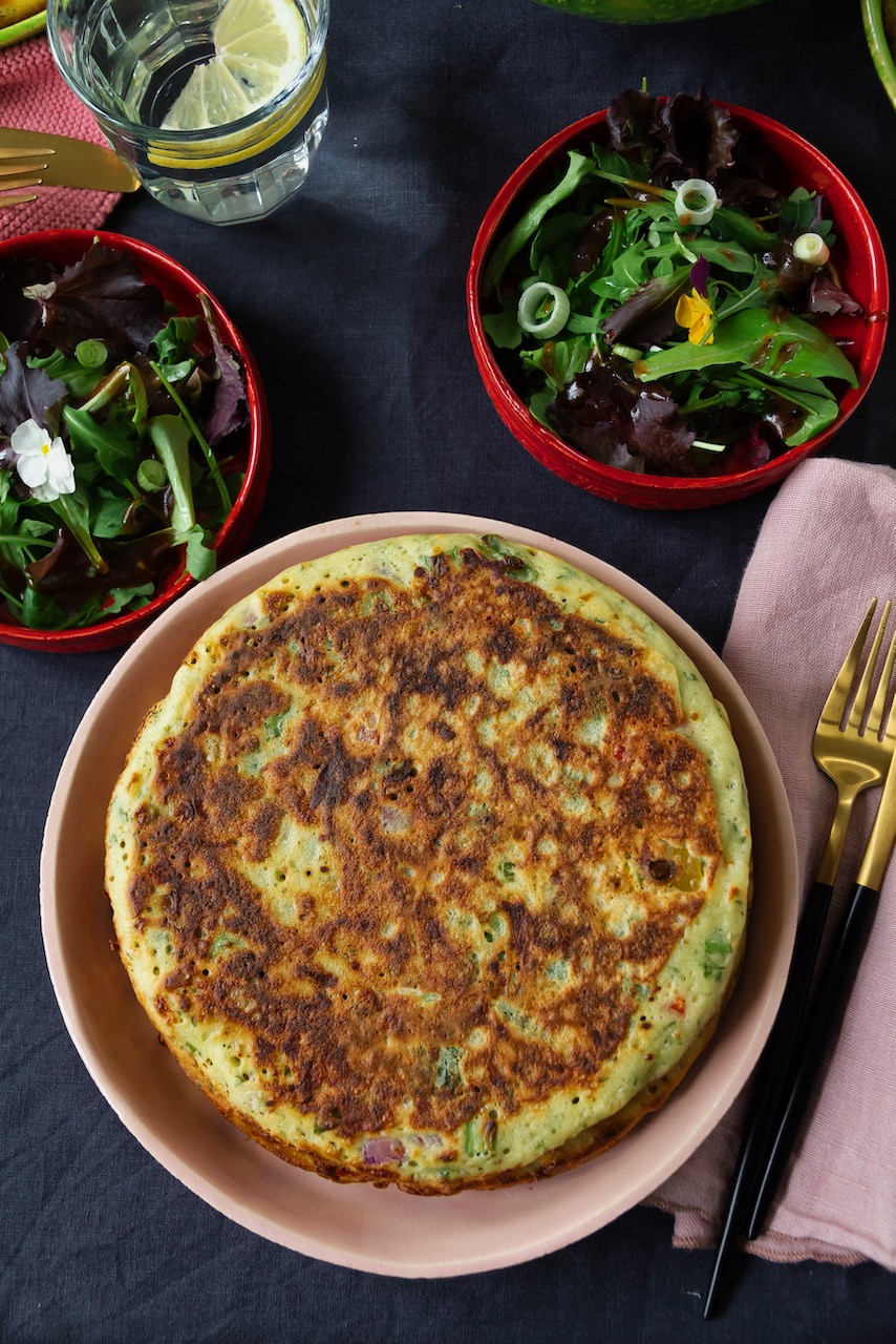 Tatsächlich habe ich ein Gericht erschaffen, das so einzigartig ist, dass ich nicht einmal wusste, wie ich es benennen sollte. Hey, Ich stand da und betrachtete meine neueste Schöpfung – eine Mischung aus Pizza, Brot und Gemüse, die in einer Pfanne zubereitet wird. Ich überlegte, sie „saftiges Gemüsebrot aus der Pfanne“ zu nennen oder Pizza-Pfannkuchen, aber vom Geschmack kommt meine Kreation der Pizza am nächsten.