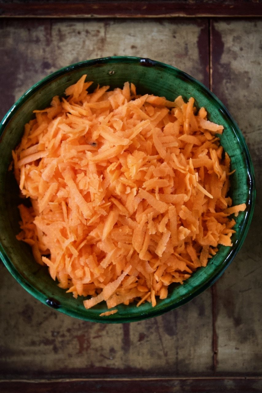 Finely grate 3 carrots from 4.