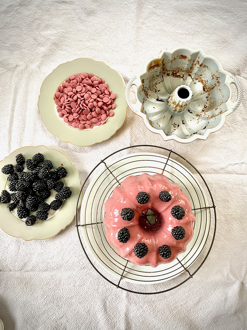 INGREDIENTS FOR CHOCOLATE BUNDT CAKE WITH RUBY CHOCOLATE GLAZE