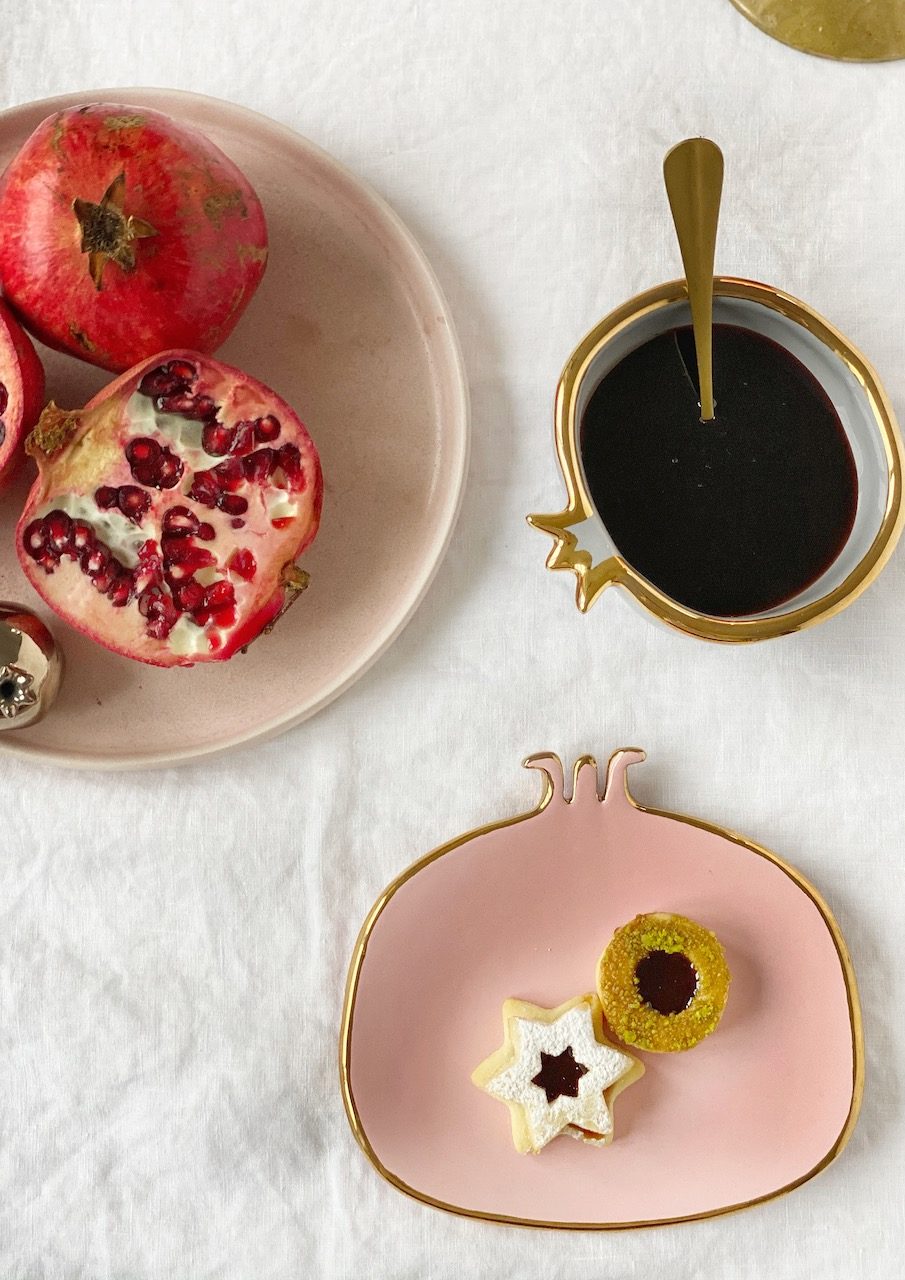 Heute Abend ist Shab-e Yalda, die längste Nacht des Jahres und da Backen Bekannterweise der Seele gut tut, habe ich den Rührlöffel geschwungen und Shab-e Yalda – Plätzchen mit Granatapfelgelee gebacken und eine Yalda Playlist erstellt. Die Plätzchen sind wie die Linzer Plätzchen aus einem sehr feinen und zarten Mürbeteig und werden mit Gelee gefüllt. Du brauchst dafür auch nur wenige Zutaten 1 Bio Zitrone, Mehl, Zucker, Eier, Butter und ganz wichtig Granatapfelgelee. Am besten schmecken sie, wenn sie mindestens einen Tag in einer Keksdose aufbewahrt werden. Hast du auch schon meine Nan-e Par – zarte Federplätzchen gesehen? Weitere Plätzchen Rezepte findest du hier.