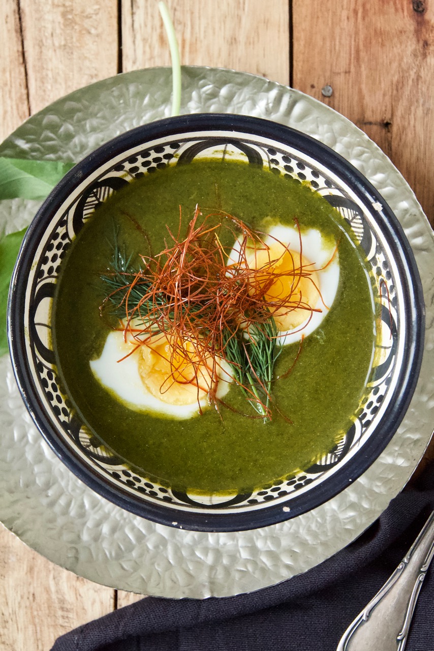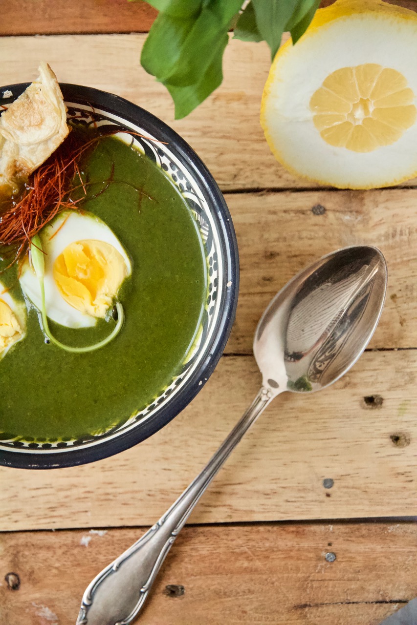 Endlich ist es Frühling und wieder Bärlauchzeit! Was hälst du von einer gesunden Soup-e Valak – Bärlauchsuppe nach persischer Art سوپ والک ? Eine tolle ausgefallene Suppenvariation aus meiner persischen Frühlingsküche, die auch noch großartig schmeckt. Frisch, so schön grün und mit einem zarten Bärlauchgeschmack, ein cremiger Genuss zum Löffeln. Du benötigst auch nur wenige Zutaten für die Suppe, neben Bärlauch, Spinat und Frühlingszwiebeln, brauchst du etwas Ghee und zum würzen Advieh und Knoblauch. Nur noch mit etwas Schafjoghurt verfeinern und mit knusprigem arabischem Brot, Chilifäden und halbierten Eier toppen. Mit meiner Bärlauchsuppe ist die Wintermüdigkeit wie weggeblasen.