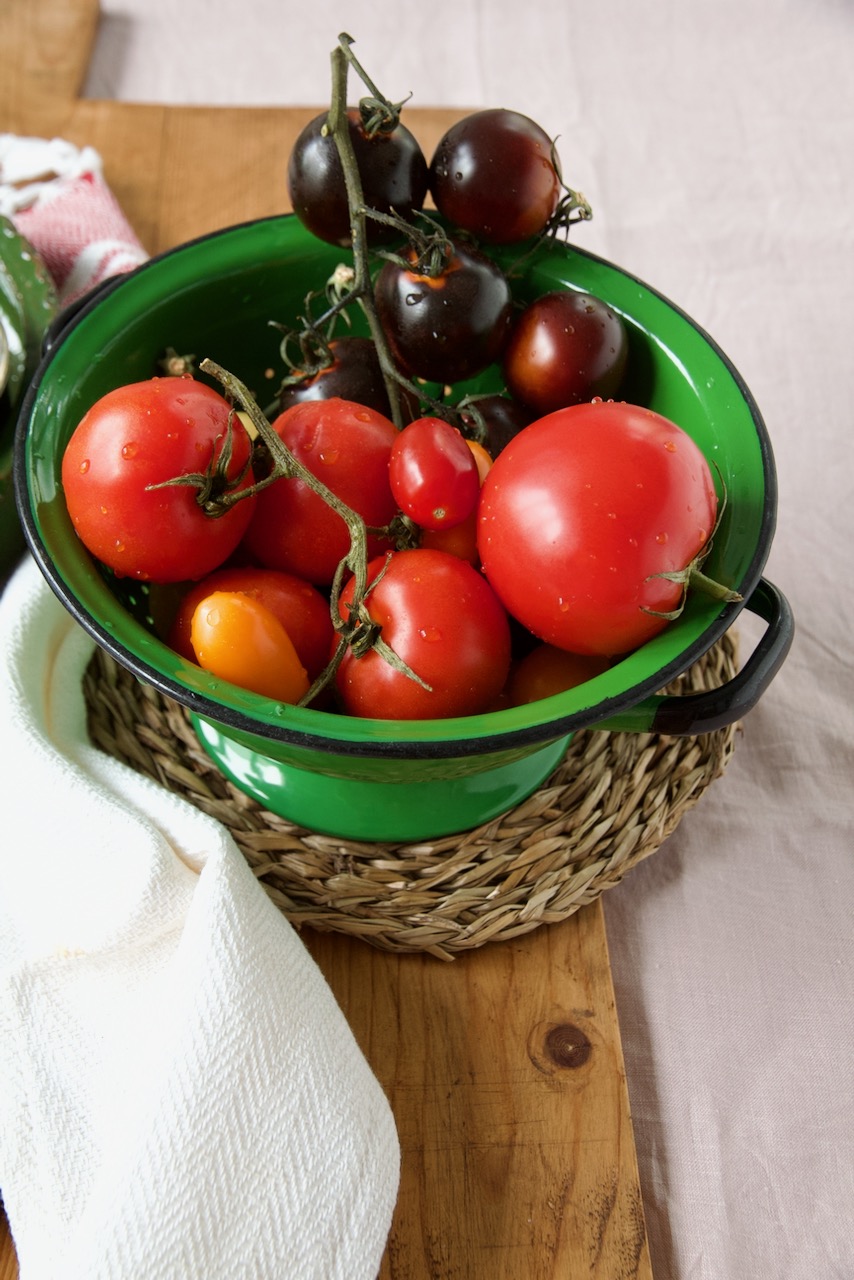 Von Juli bis September ist Tomatensaison und endlich gibt es auch bei uns geschmackvolle Tomaten in allen Farben und Ausführungen. Dieses Jahr habe ich schwarze Cocktailtomaten aus dem Garten geerntet, sie sehen nicht nur toll aus, sondern haben einen intensiven Geschmack und sind richtig schön süß. Wenn du den Stielansatz von der schwarzen Cocktailtomate entfernst wird ein kleiner Stern sichtbar. Ich muss zugeben, dass mich solche Kleinigkeiten total catchen und begeistern.