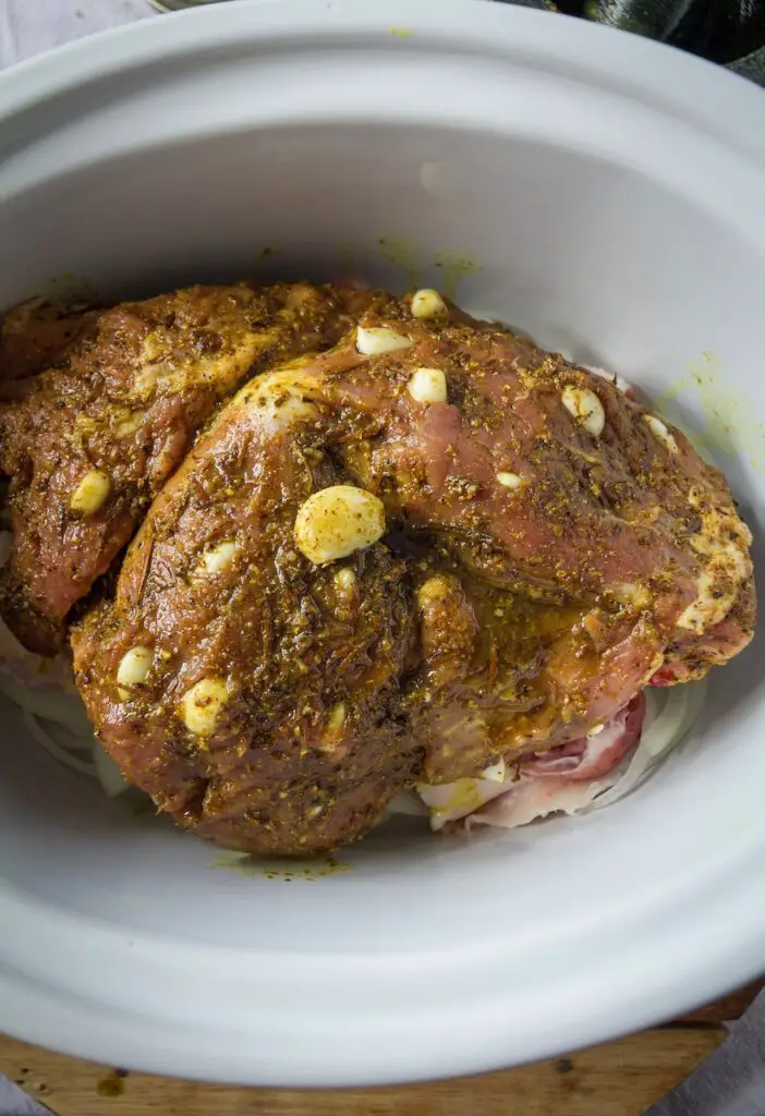 Traditionell wird das Fleisch mit Knoblauch, Öl und Kräutern wie Rosmarin eingerieben und anschließend schonend im Ofen gegart. Durch die lange Garzeit bleibt es saftig, entwickelt ein intensives Aroma und wird so weich, dass es fast von selbst zerfällt. Ich habe heute eine einfache Version aus dem Slowcooker für dich mit einem persischen Touch.