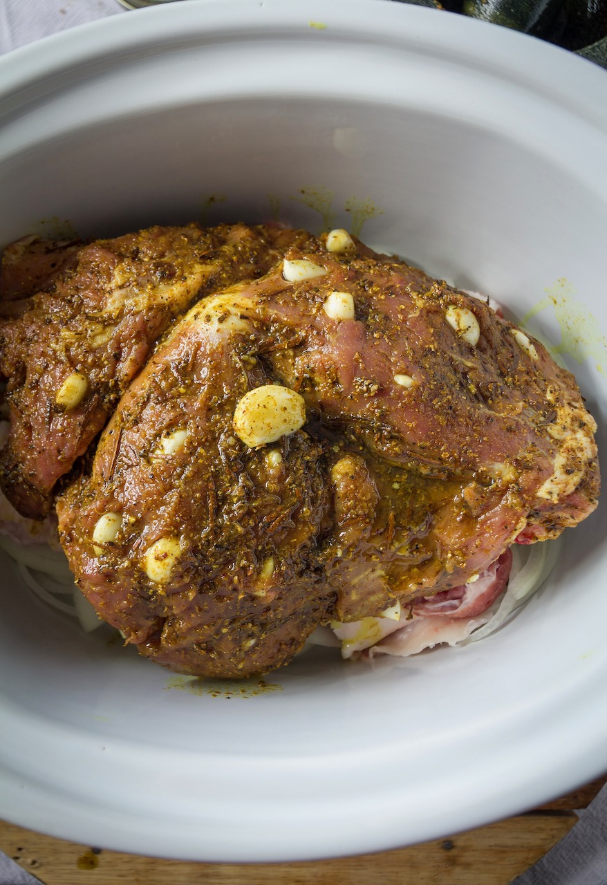 Den Slowcooker auf „Low“ einstellen und das Fleisch etwa 12 Stunden sanft garen lassen.
