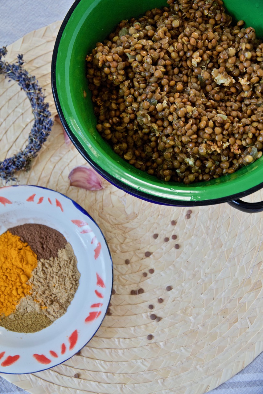 This vegan spread uses green mountain lentils and always belongs on a mezze table
