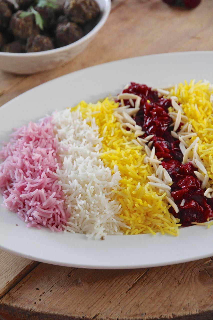 Albaloo Polo – Colorful Sour Cherry Rice with Lamb Meatballs