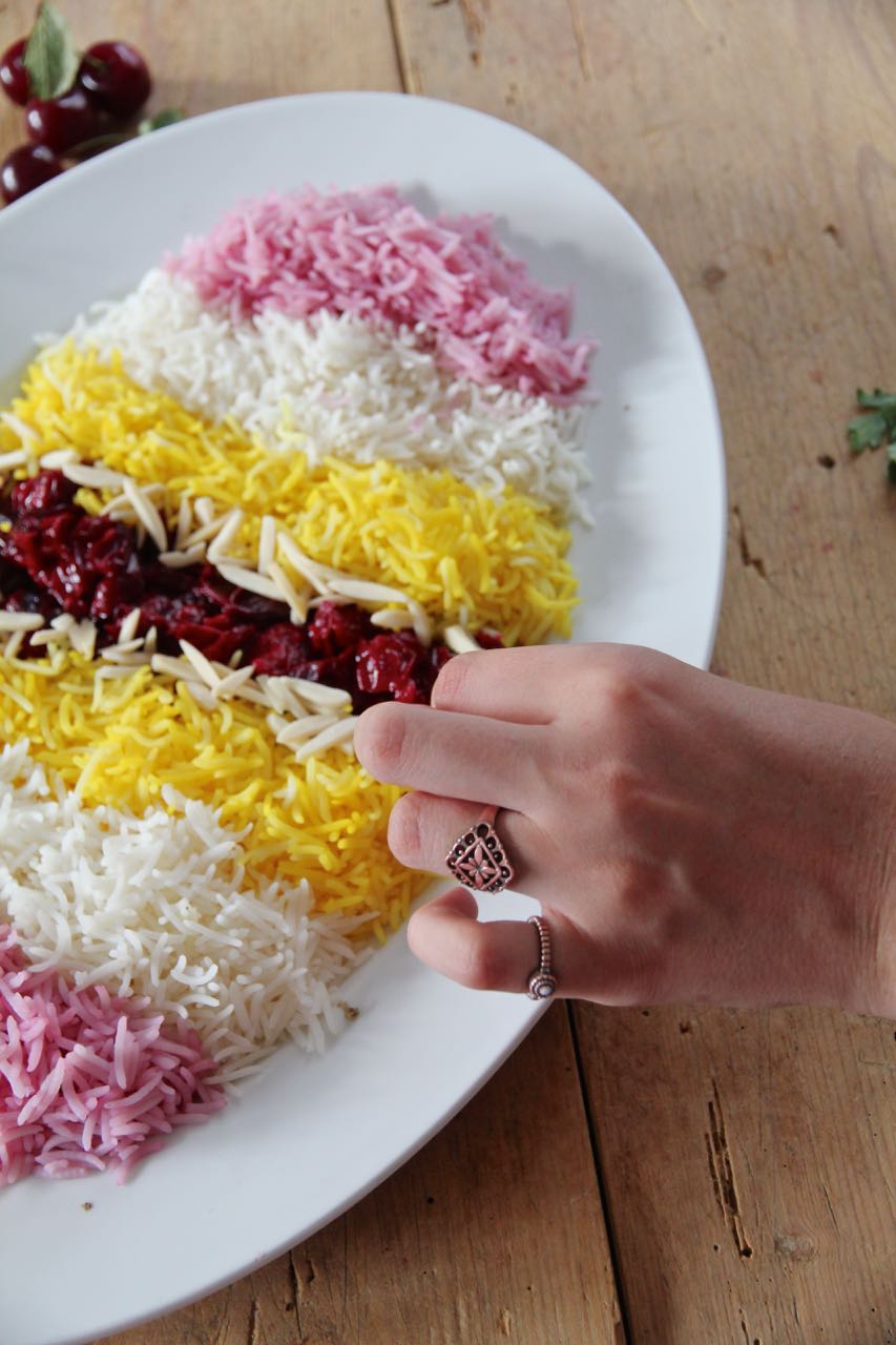 I found some fresh ones the other day and decided to make one of my all-time favorite Persian dishes: Albaloo Polo, which literally means “Sour Cherry Rice.” It’s a festive dish we typically serve at special occasions — a real eye-catcher on any celebration table.