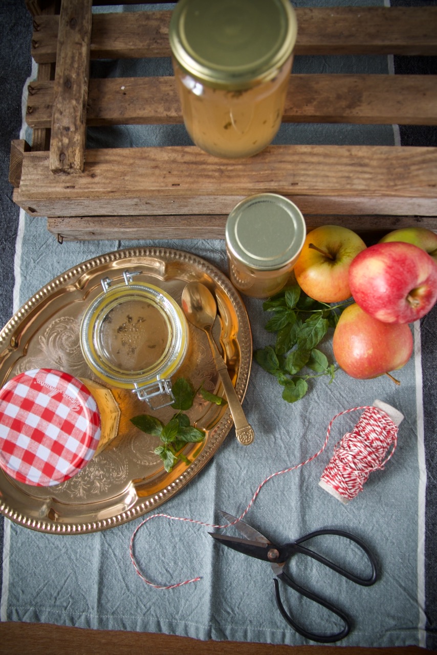 But do not throw away the apple remains, you can prepare apple cider vinegar, compote or applesauce. The next day, the Apple Mint Jelly is prepared very simply from the apple juice. When ready, place the jelly in nice sterilized jars. I prefer to sterilize the jars in the oven, here I have instructions for you.