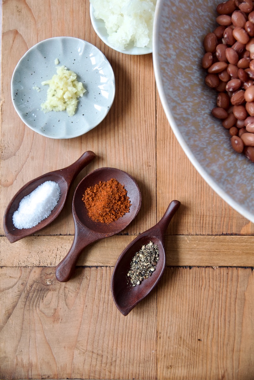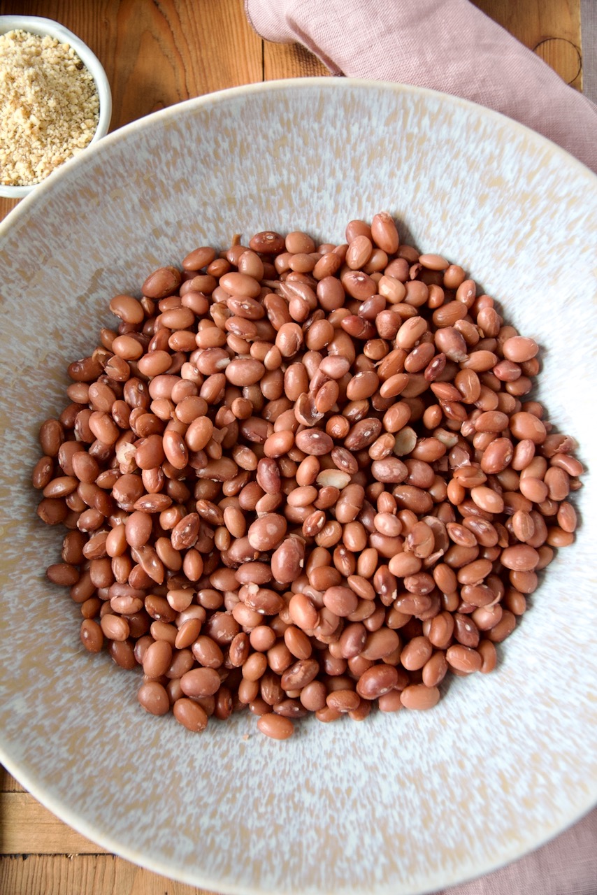 Wash pinto beans and soak them in plenty of water overnight. The next day, rinse under clear water and boil with fresh water for 30 minutes until soft. Strain in a colander and allow to cool. Set aside