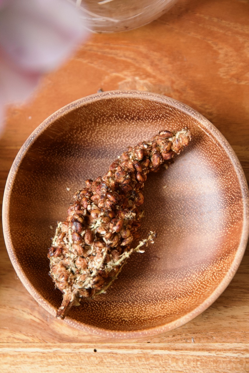 Halve the pomegranate and use the classic “tapping trick” to remove the seeds: