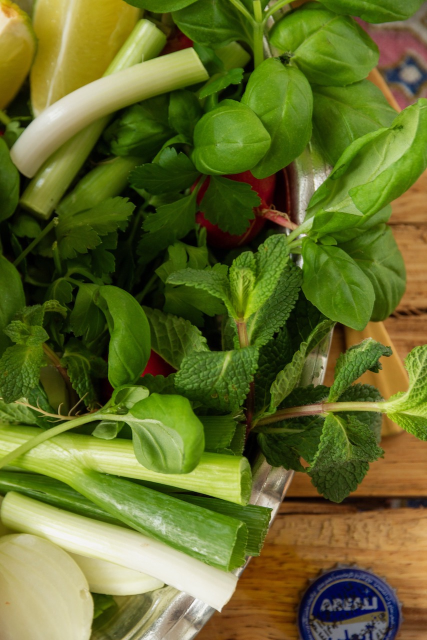 Serve with fresh Basil, onions or spring onions, bitter orange or limes, Sir Torshi (pickled garlic), Torshi Liteh (sour pickled vegetables), Khiyar Shoor (pickled salt cucumbers), and Mast-e Chekideh (Labneh, a thick yogurt). Enjoy your Dizi feast!