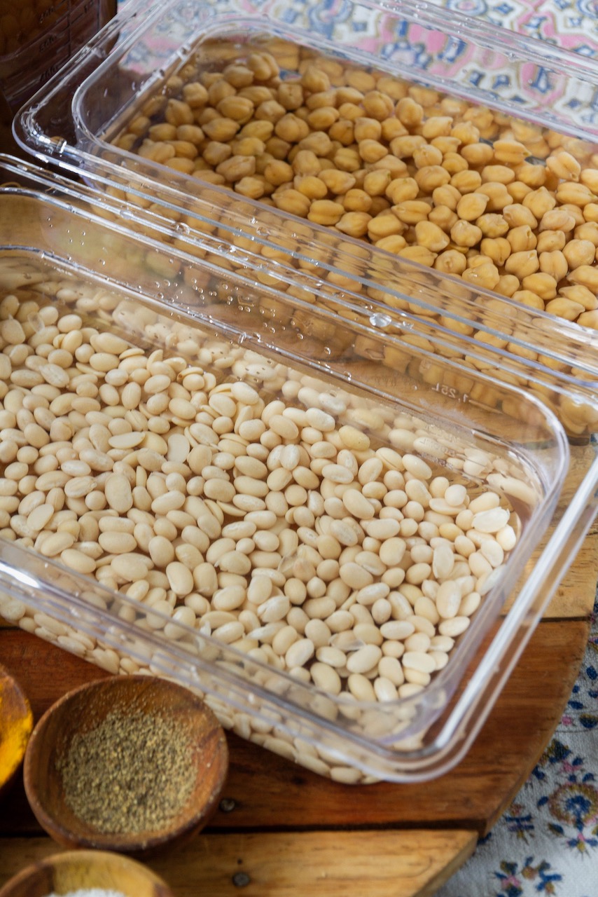 Soak the white beans and chickpeas overnight.