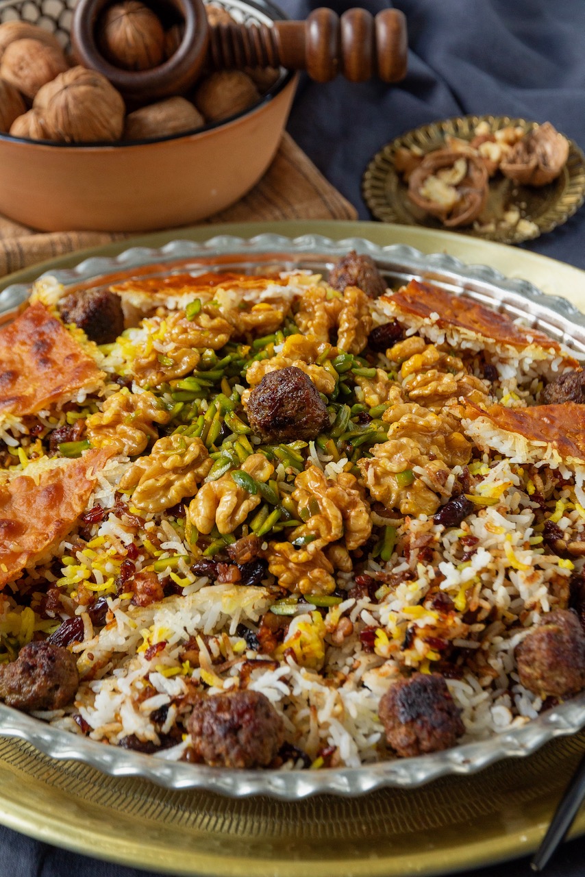 Gerdoo Polo – Walnut Rice with Barberries, Raisins and Saffron