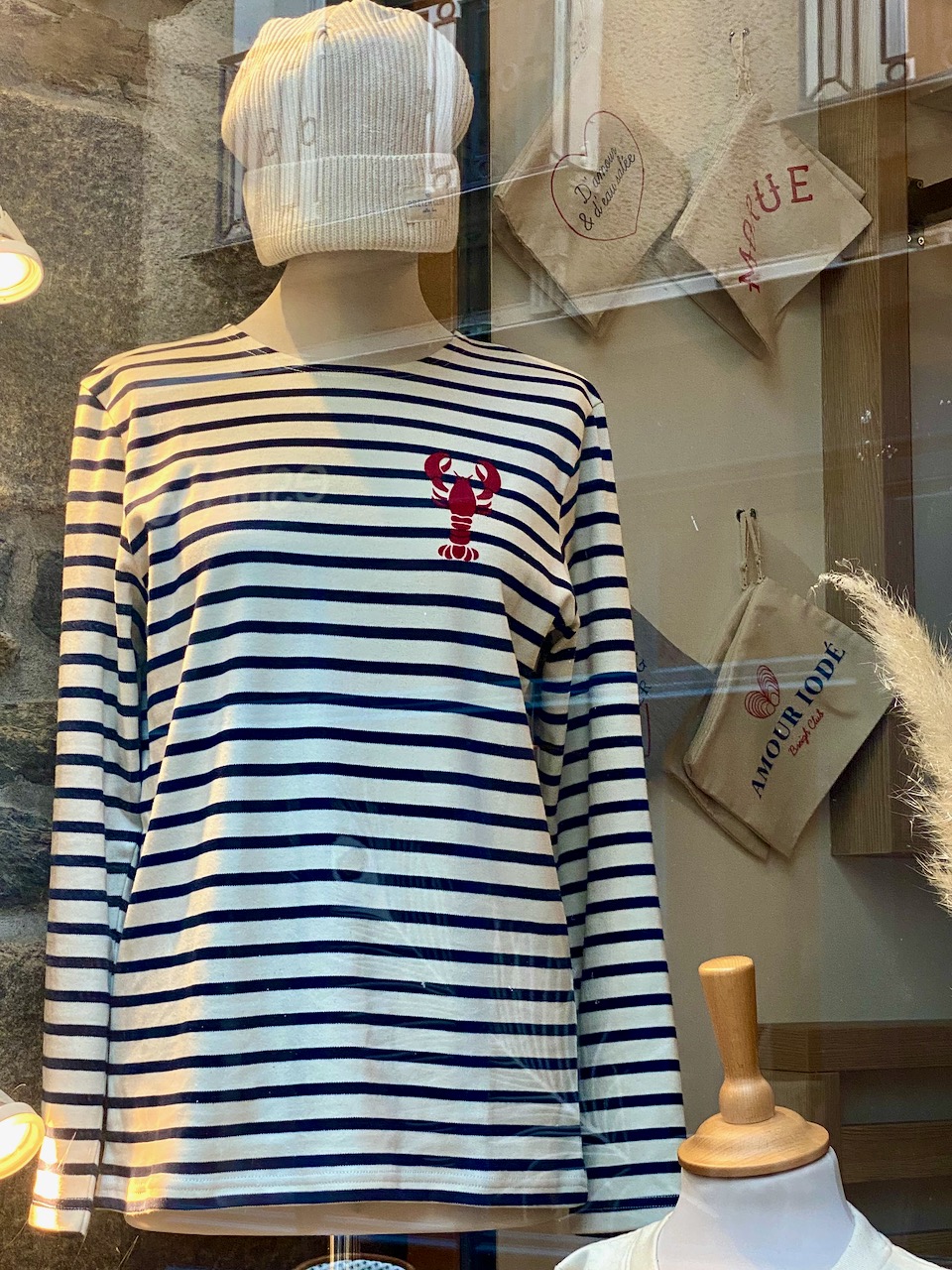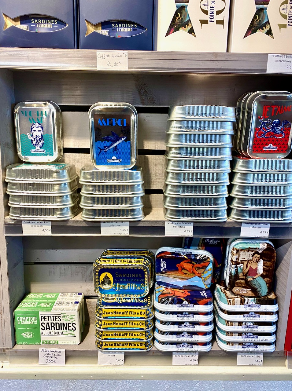 Well-fed and happy, we walk back to the port and drop in at the Comptoir des Gourmets. The store has a large selection of Breton specialties, such as canned fish, fleur de sel, cider, beer, cookies, or caramel with salted butter. I find the sardine tins with original illustrations quite beautiful. We browse and adore the Breton nautical decorative products such as tableware, textiles or accessories, and typical souvenirs made in Brittany. I pick a kitchen towel which you can see below in my recipe.