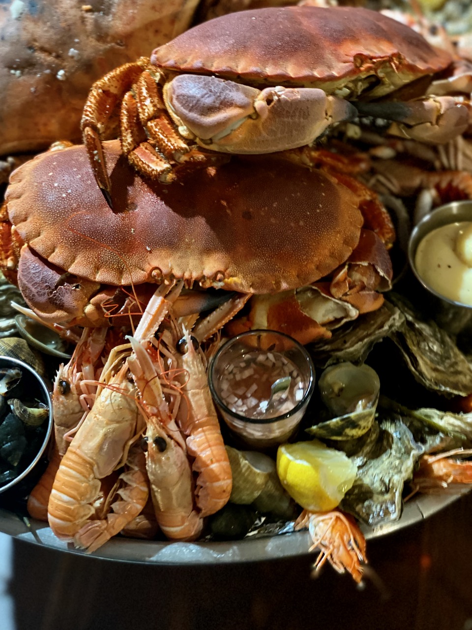 We experience a culinary sailing trip and start with the signature dish of Brittany, “Plateau de fruits de Mer”. We slurp, crack and scoop cooked seafood served cold such as oysters, clams, edible crab, langoustines ( known as “Demoiselles de Loctudy”) and winkles and whelks. Along with a delicious homemade mayonnaise, vinaigrette and crusty fresh Baguette with salted butter. Enjoying the seafood platter with a view of the ocean is a double pleasure. I already once had the pleasure of these fresh delights at FrischeParadies in Frankfurt, read my post here. We finish the evening with a delicious dessert, a crème brulée with tonka beans is my choice.