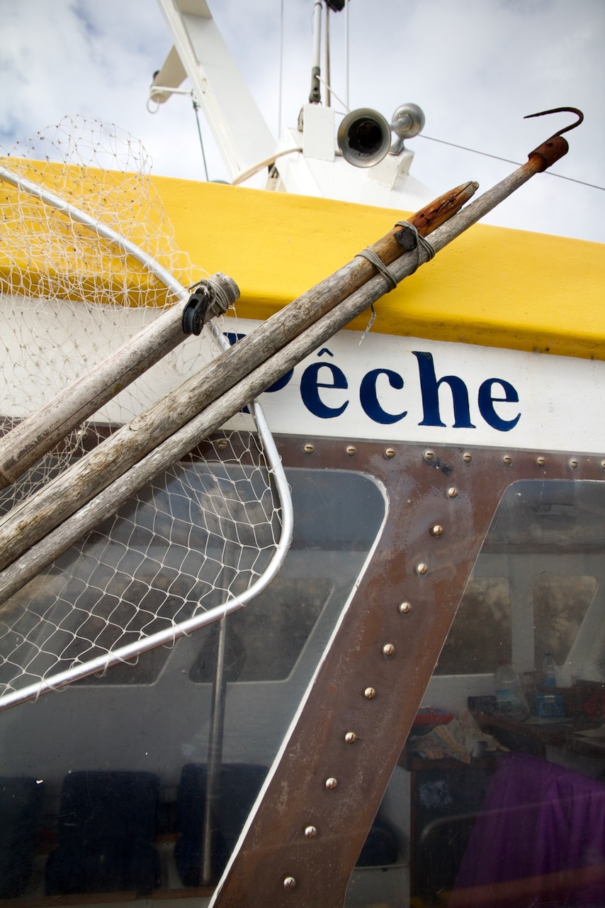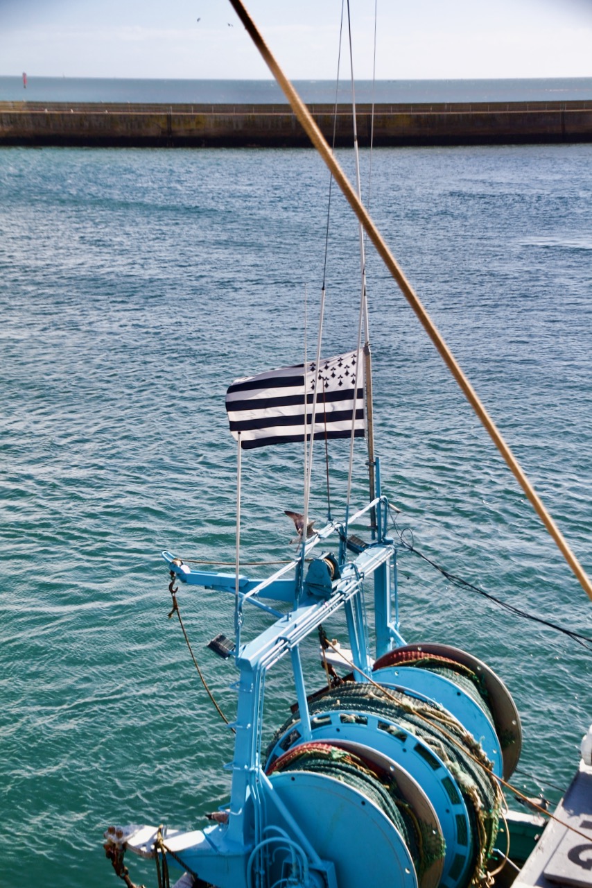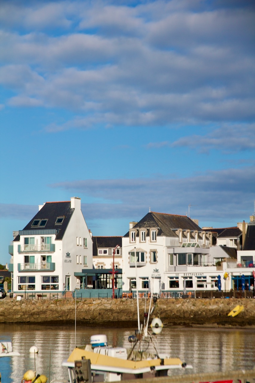 The next morning we arrive Loctudy, the second most important fishery port in Brittany. The Tourelle des Perdrix, a stunning lighthouse with a pretty black and white chessboard pattern, shines in the moody morning light. On the opposite side, we view the small island of Ile Tudy. A fisherman tells me that the island used to be disconnected from the mainland and could only be reached by boat. After rich Parisians and Bretons moved into their vacation homes there is now a road leading to the island. The port of Loctudy is the capital of langoustines and famous as “Demoiselles de Loctudy”.