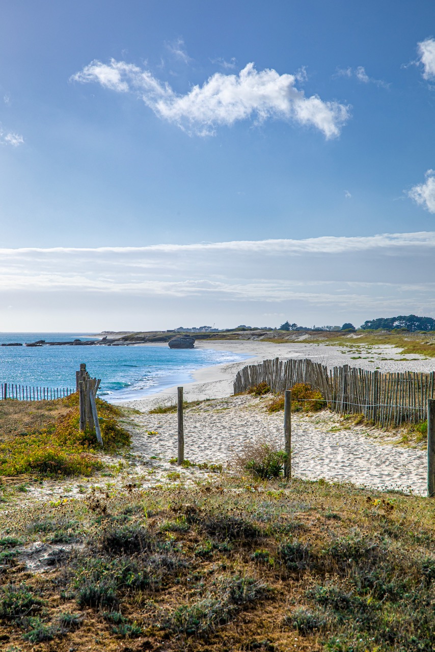 In Lesconil, freshly caught fish and especially langoustines is sold daily by the fishermen right at the quay. Lesconil is also well known for its seaweed farming, the vegetable of the sea. During a long walk on the hiking trail GR34, you can reach the white sand beaches of the Plage des Sables Blancs, when you turn left in the village. On the right of the village, the dunes and the bizarre rock formations of Les Rochers du Goudoul at the Plage de Kersau impress us.