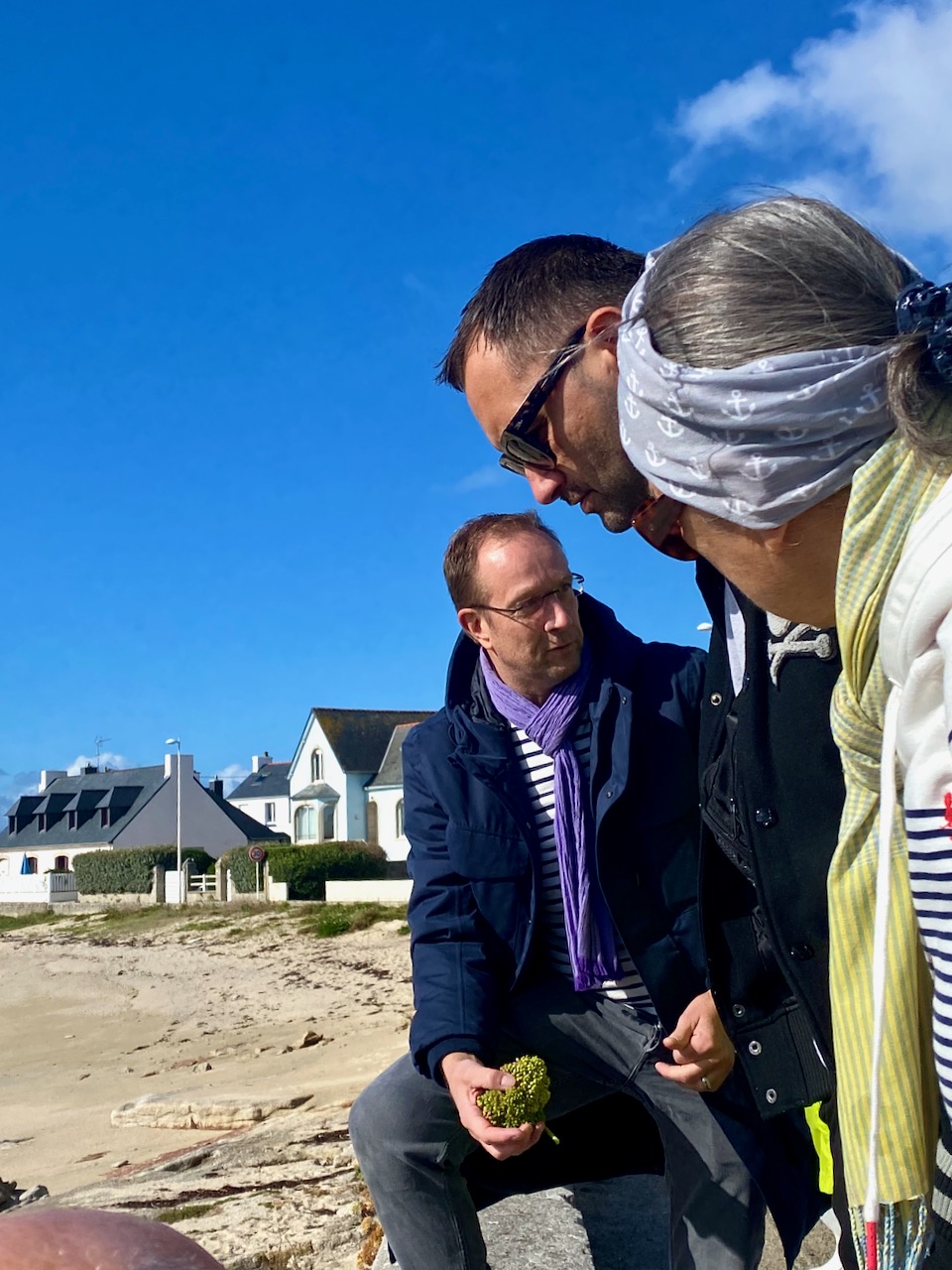 Nils tells us that he prepares a salad from the leaves of the sea fennel or uses them as a seasoning. I can imagine a pesto from sea fennel quite tasty. We continue walking, and the Breton coast presents us with its unique landscape. The coast is covered with granite and there are round holes in the rock now and then. These have been broken out a long time ago and used as millstones.