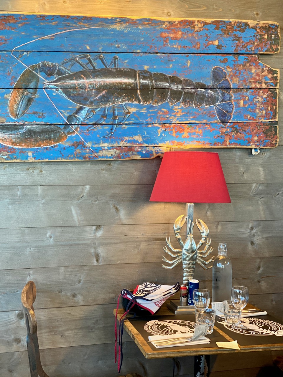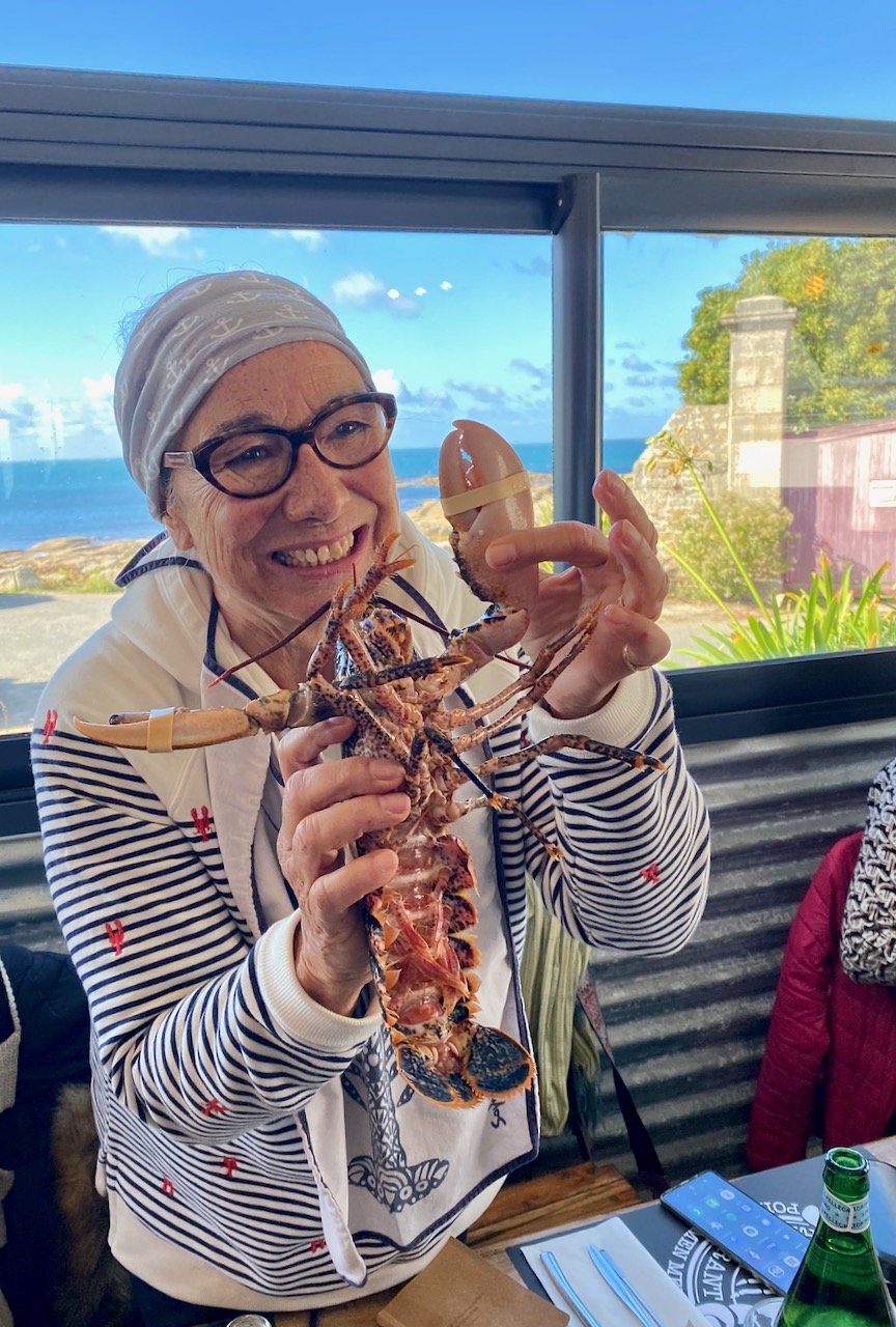 We tie the lace around our necks and are ready to eat. It is great to put aside table manners when eating lobster. The lobster is tender, but also firm, and delicious. Sitting in such a beautiful place by the Atlantic with a view of the Pointe Men Meur, and the endless sea and eating delicious lobster is just unforgettable. By the way, it is really easy to prepare lobster, here I have a recipe for you. We end the wonderful lunch in this beach jewel with a homemade vanilla shot. A hip hip on the homard of An Atoll.