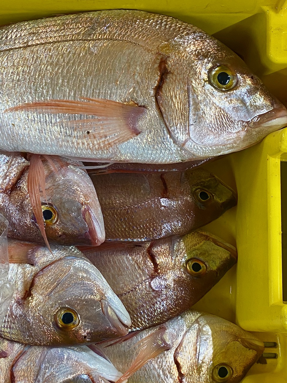 What a hustle and bustle, the fishermen tie their boats with a line by the bow and lift the boxes out of their boats with the wriggling langoustines, monkfish, rays, squid, sardines, and much more. Volunteers are waiting at the quay with trolleys to receive the fresh fish and bring it to the auction hall, where the fish are sorted according to the catch method, quality, and size. The freshly caught fish can be purchased by anyone in the small poissonerie (fish store) right next to the auction hall.