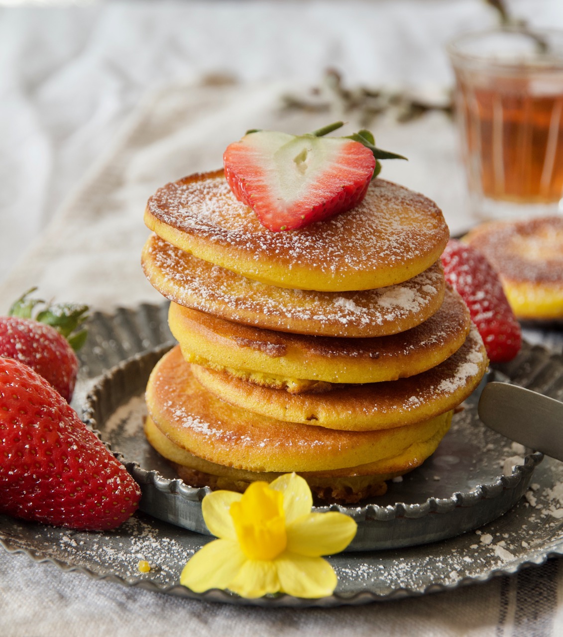 These pancakes are the highlight of any Easter brunch, and a small culinary journey to the Persian Gulf. You can also bake them in a heart shaped pancake pan and serve on Valentine’s Day.