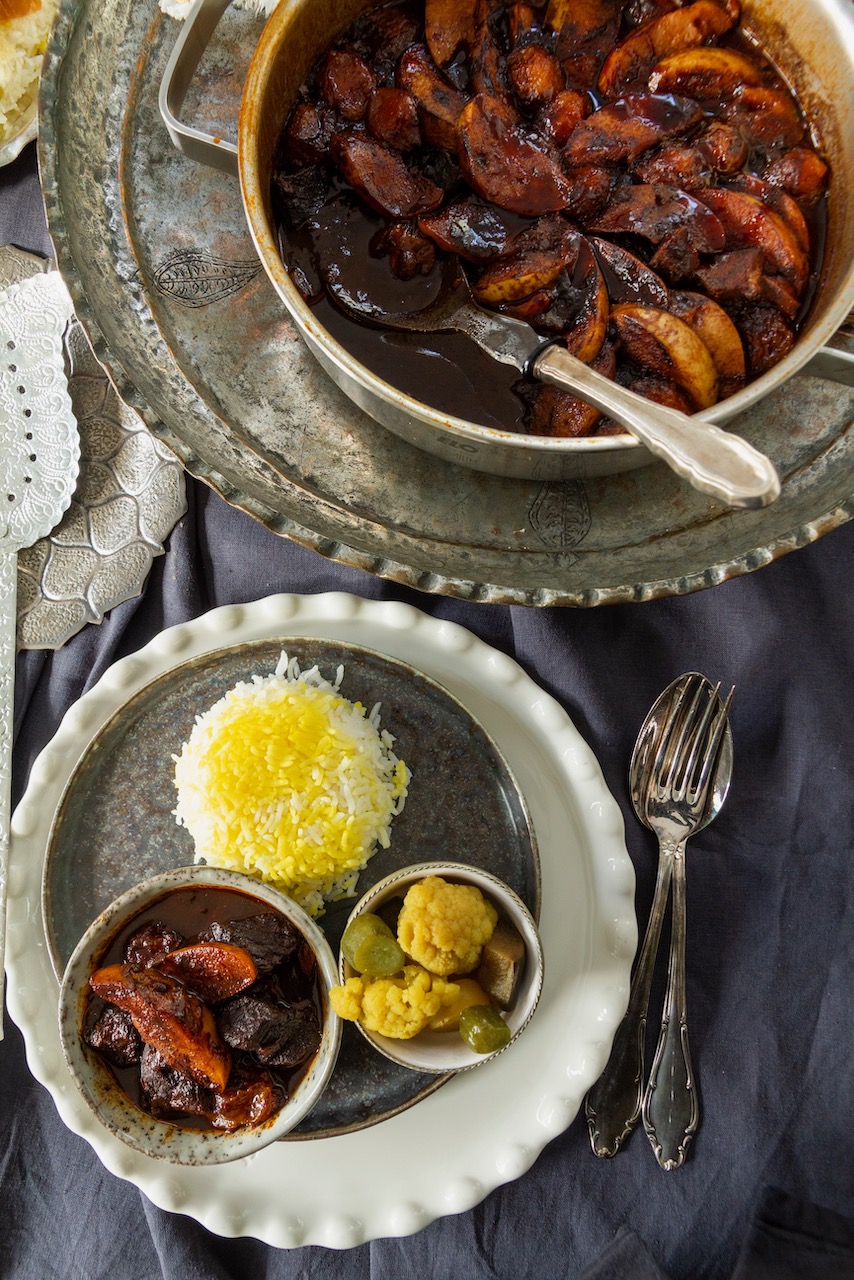 This beef and quince stew is traditionally served with Persian rice and pickled sour vegetables (torshi). Enjoy!