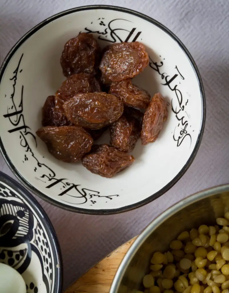 Dried Aloo Bukhara, also called Majlesi or golden plums, are rich in fiber, potassium, and antioxidants. To use them, simply soak in warm water and add to your dish. If you can’t find them, prunes or dried apricots make a good substitute.