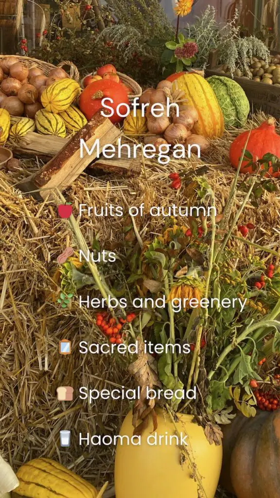 Much like the Haft Sin of Norooz, Mehregan has its own symbolic table, the sofreh, traditionally laid with a purple cloth.