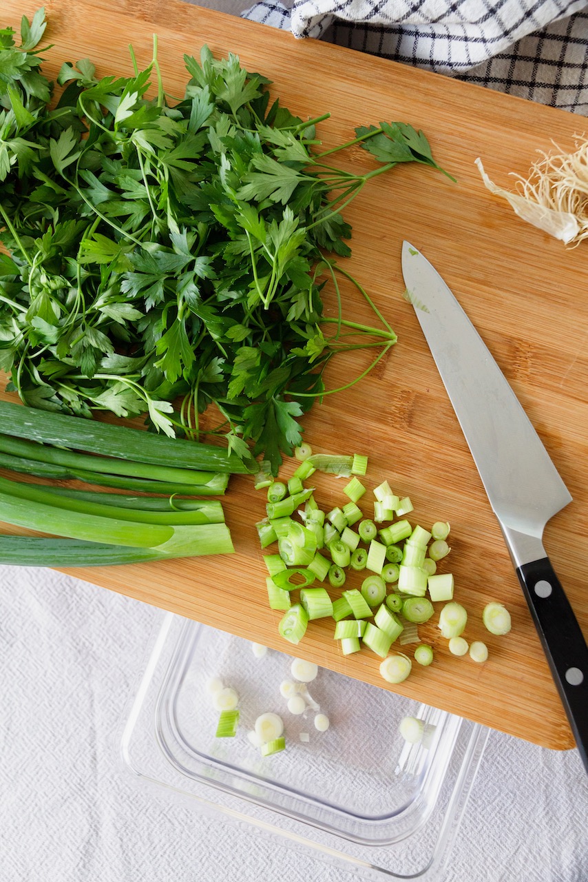 Preparing herb flatbread is simple and easy. All you need are basic ingredients such as flour, water, yeast, and some fresh herbs. The dough is mixed quickly and left to rise before being divided into small portions and baked. Nan-e sabzi is prepared with a variety of herbs such as parsley, coriander, or dill, which together provide a delicious taste. I prepared it with spring onions and flat-leaf parsley though.