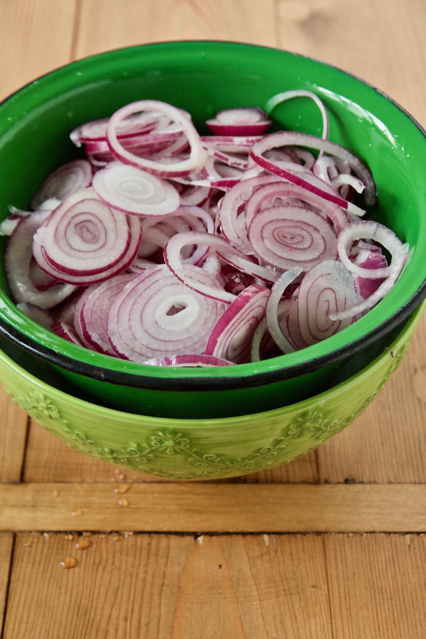 Bring water to a boil, let it sit for a minute, then pour it over the onion slices.