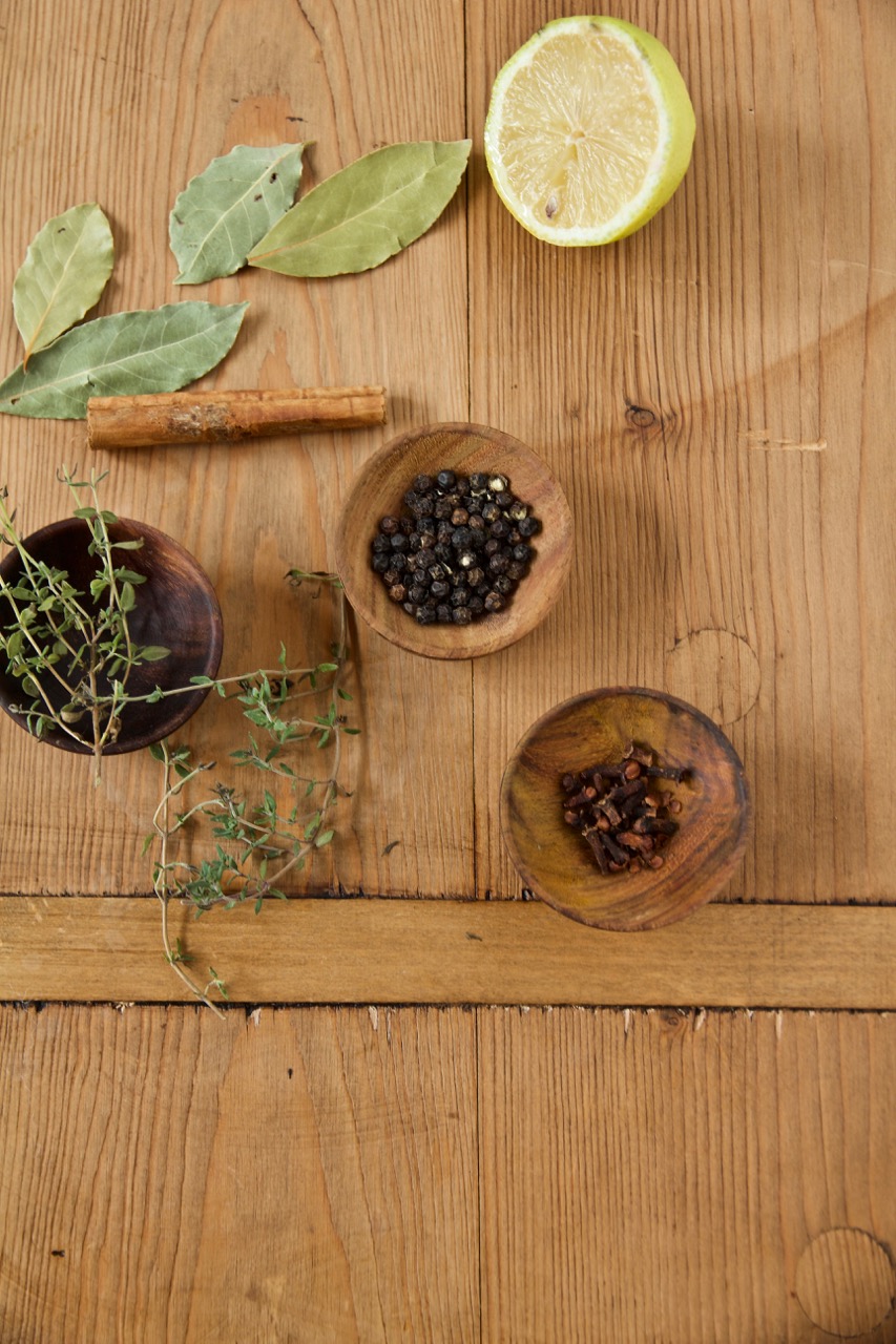 Place all spices except thyme in a dry pan. Toast for about 3 minutes until fragrant.