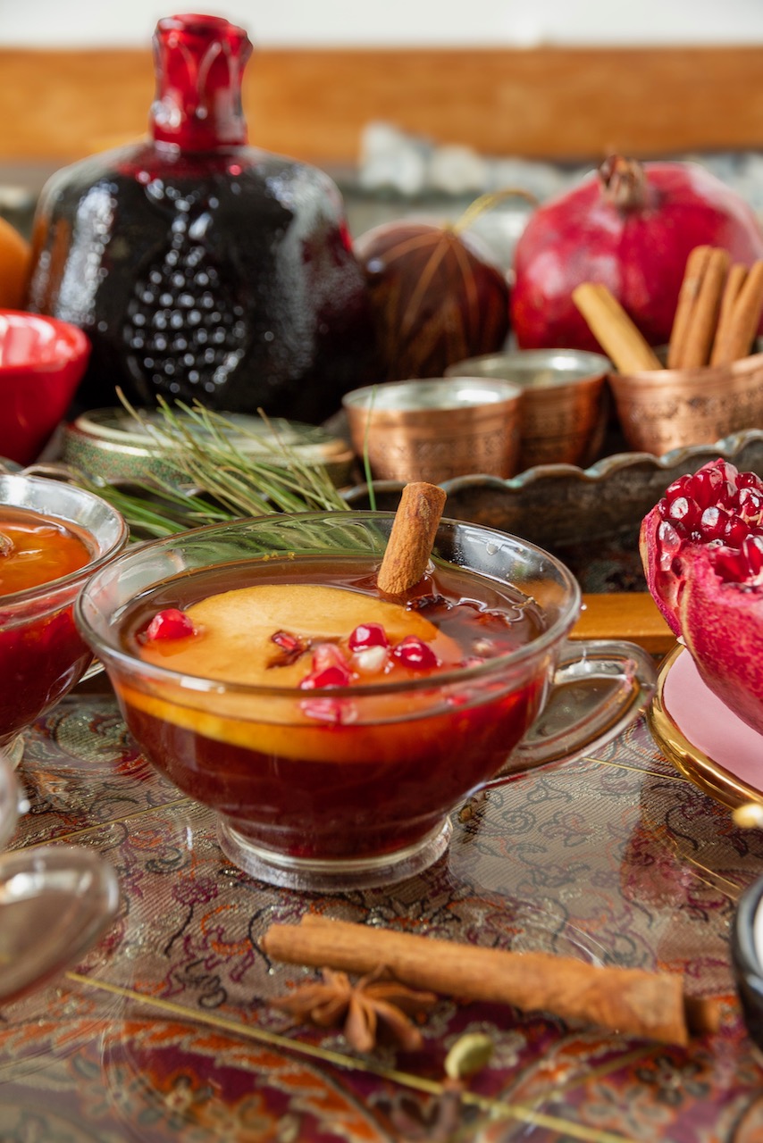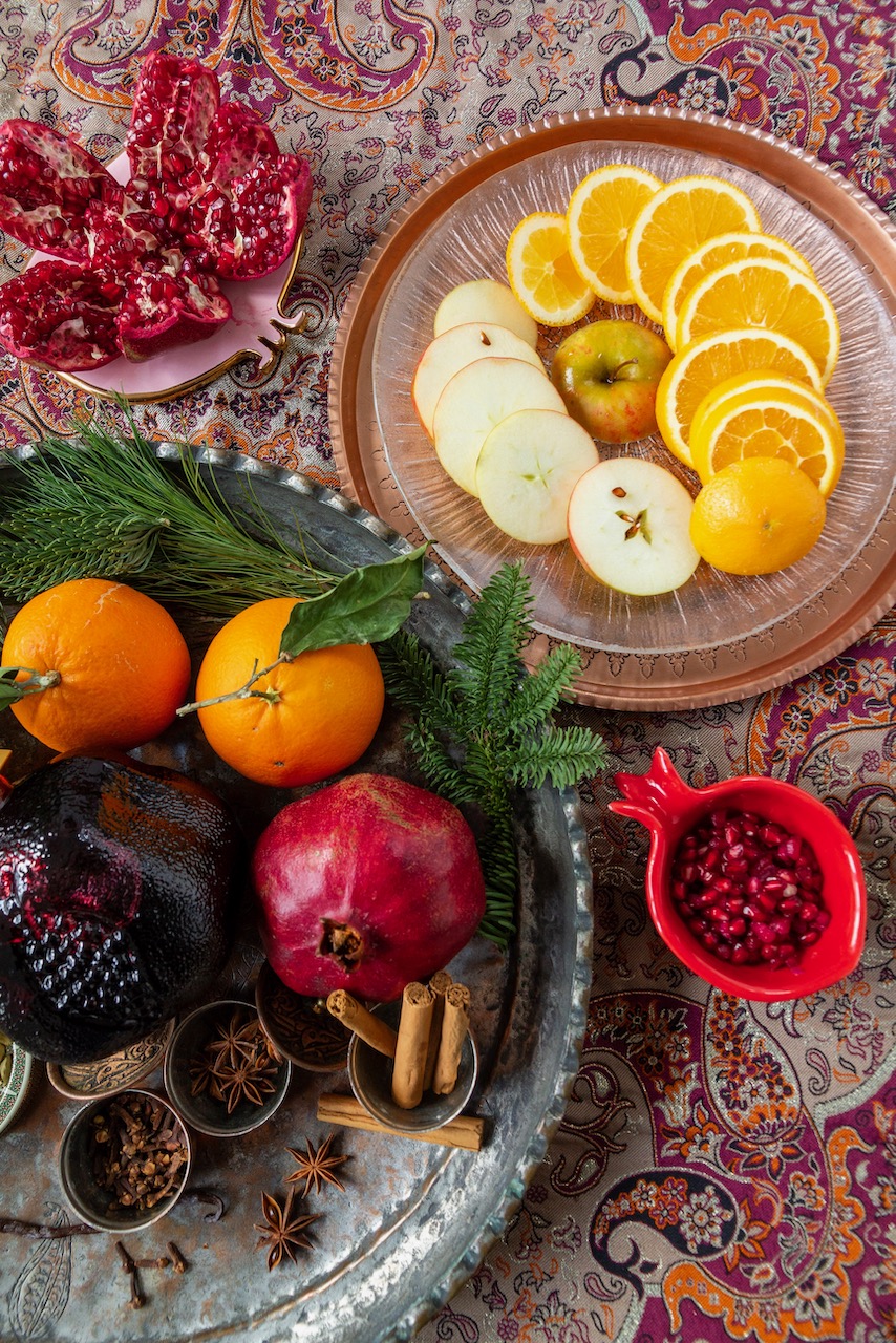 - Music: Set the mood with a Yalda playlist featuring Persian classics and modern tunes, or go for a festive holiday market vibe with your favorite songs.