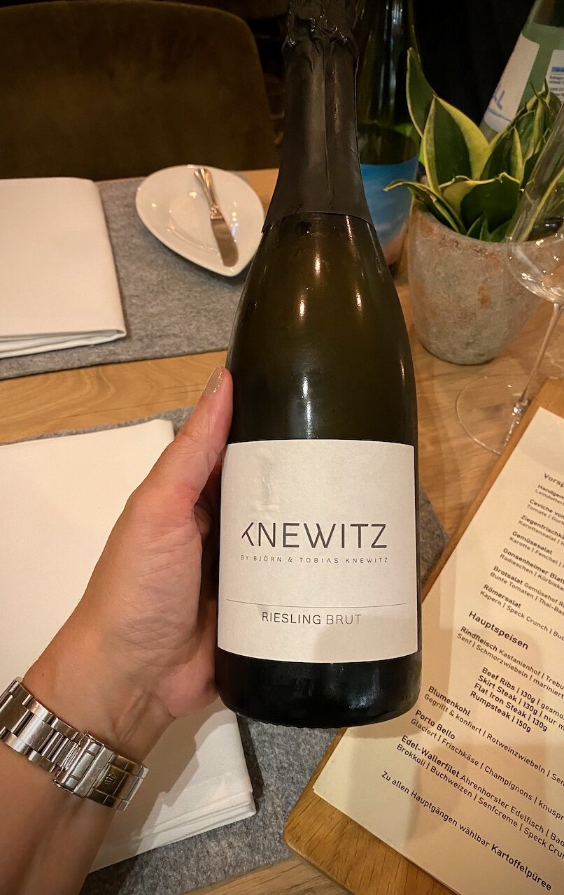 At our get-together, I meet my fellow food bloggers Petra from Holla die Kochfee and Michael from Salzig, Süss, Lecker. I’m very happy as I already know both of them. We are different, but we all have one thing in common, the love of cooking. In addition, the Super Team with Lisa from Gourmet Connection, Alex from Rheinhessenwein, Alba from Stabilefilms.com our videographer, and Chef Carl Grünewald are already present. We toast to the exciting days with a Rheinhessen sparkling wine. The Riesling Brut sparkling wine from Winemaker Knewitz is fresh with perfectly balanced fruit, fine and lightly creamy. The Knewitz winery is located in Appenheim, Rheinhessen, and the family focuses on natural wine-growing methods. They own the most chalky terroir in Germany and their wines are characterized by a distinct minerality with edginess.