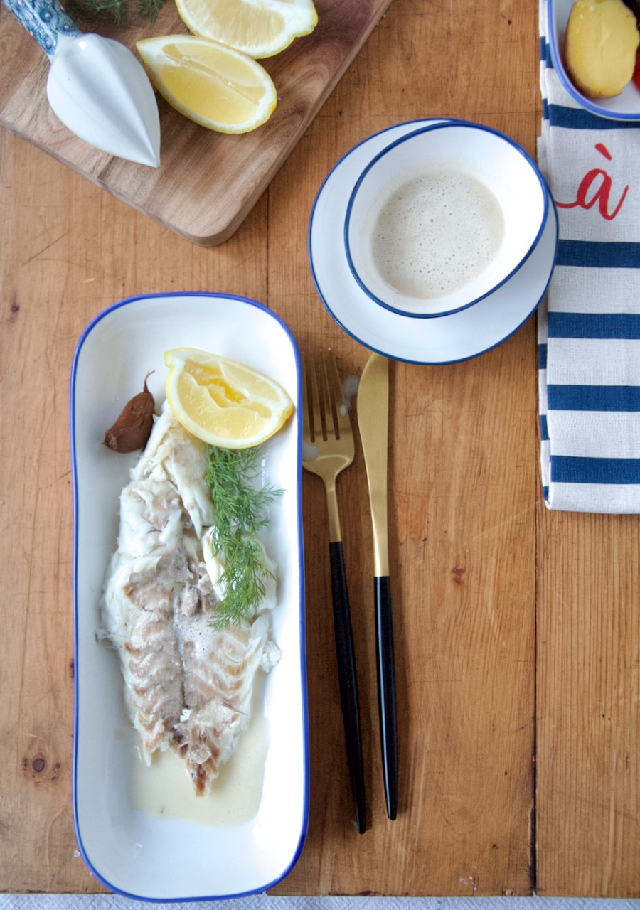 We are about to celebrate the Persian New Year Nowrooz, and for this special day we prepare fish and herb rice. I’m quite experimental in my kitchen, and every year I prepare the fish a little differently, see here, here and here. This year I decided to choose one of my favorite methods of preparing fish. I got inspiration from the Breton cookbook with Commissioner Dupin’s favorite dishes by Jean-Luc Bannalac. I serve it with Mamie Fouesnant’s Shallot Cream Sauce.