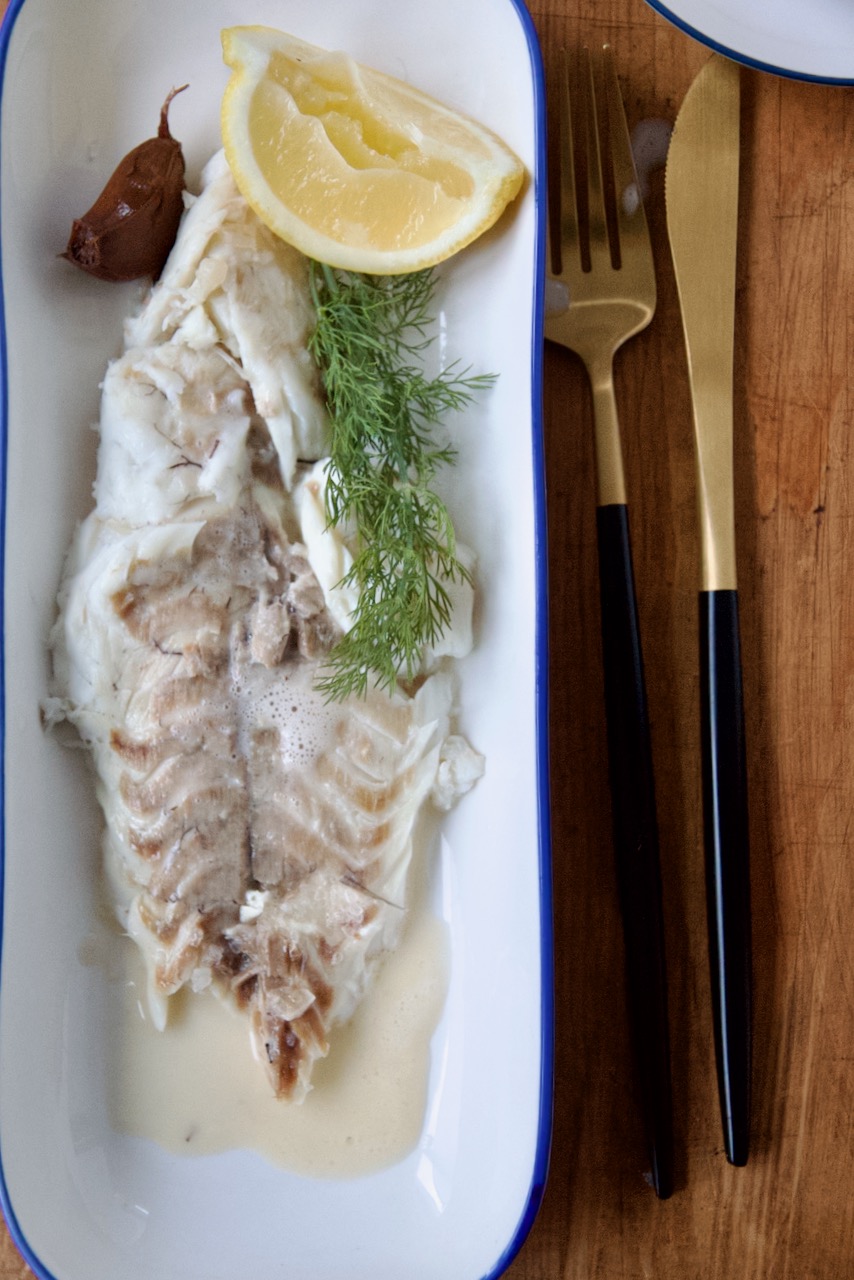 Fillet and serve immediately with Mamie Fouesnant’s shallot cream sauce.