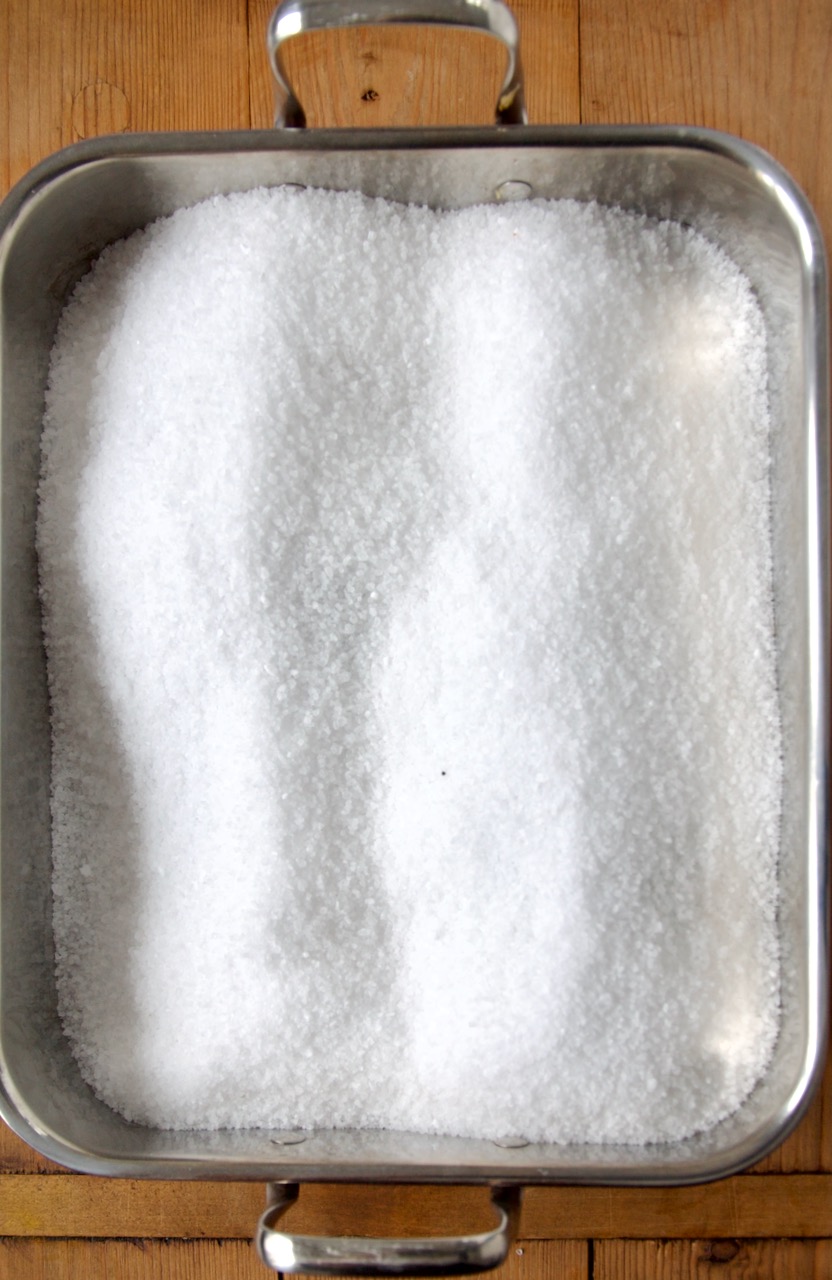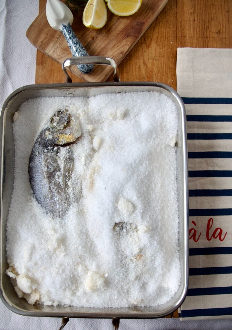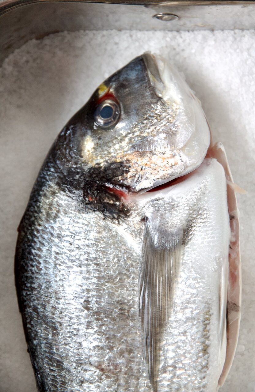 Place the Sea Breams on top and cover them completely with the remaining salt.