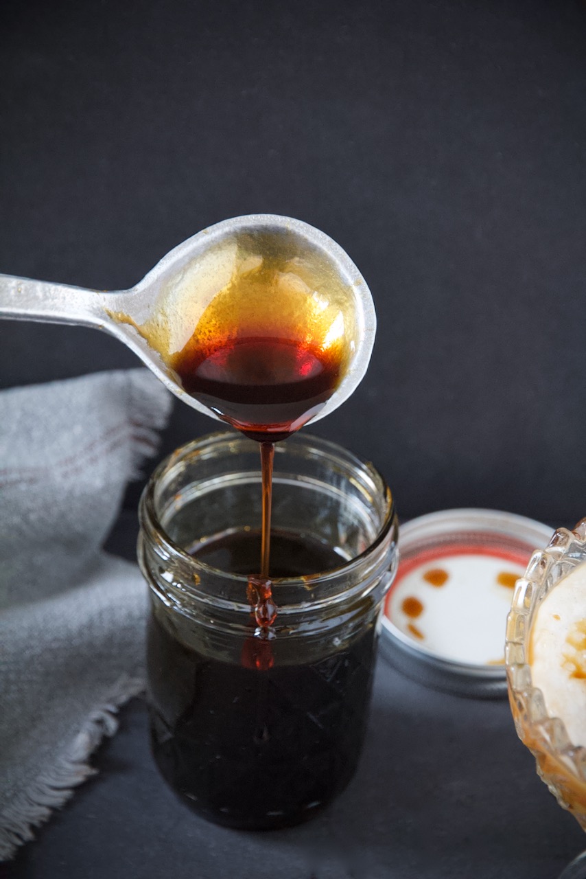 The grape syrup tastes good over rice pudding, fereni – rice flour pudding, pancakes, French toast, and waffles. You can also use it instead of sugar for baking. In Iran, Shir-e angoor is mixed with ardeh (tahini) and eaten as a spread for breakfast. I like to add grape syrup in my yogurt, warm Ayurvedic cereals, cereals, or granola. When I was a little girl, my grandma drizzled grape syrup on clean snow, and we ate it like ice cream. Mmmh, that was tasty! You can also make a delicious grape lemonade. I also like to use it in salad dressings or over cheese. Grape syrup is also perfect as a gift from the kitchen. In Iran, we have alternatives to grape syrup, such as Shir-e Khorma (date syrup) or Shir-e Toot (mulberry syrup).
