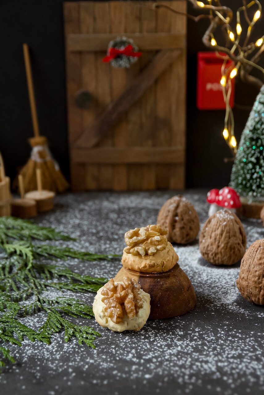 We place his tiny magical elf door on the wall and are curious about the tracks he leaves in front of his door or throughout the house. We never actually see the shy and invisible Christmas elf, but he is quite active at night and does odd and funny things. By the way, his name is Nisse, and he assists us with Christmas preparations, delights our hearts, and brings a smile to our faces with his funny and cheeky pranks. Our elf is a hungry and hardworking baker, so we have plenty of recipe ideas for the Christmas elf. Since he moved in with a Persian-German family, he has learned some Persian and international recipes.