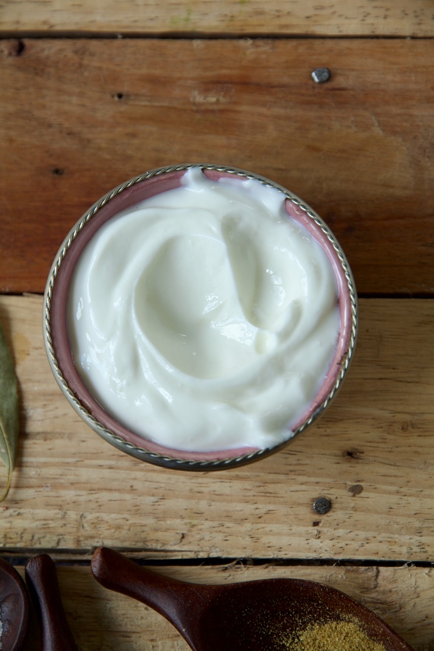 Place a blob of Greek yogurt on the spinach soup and garnish with fresh mint or other herbs.
