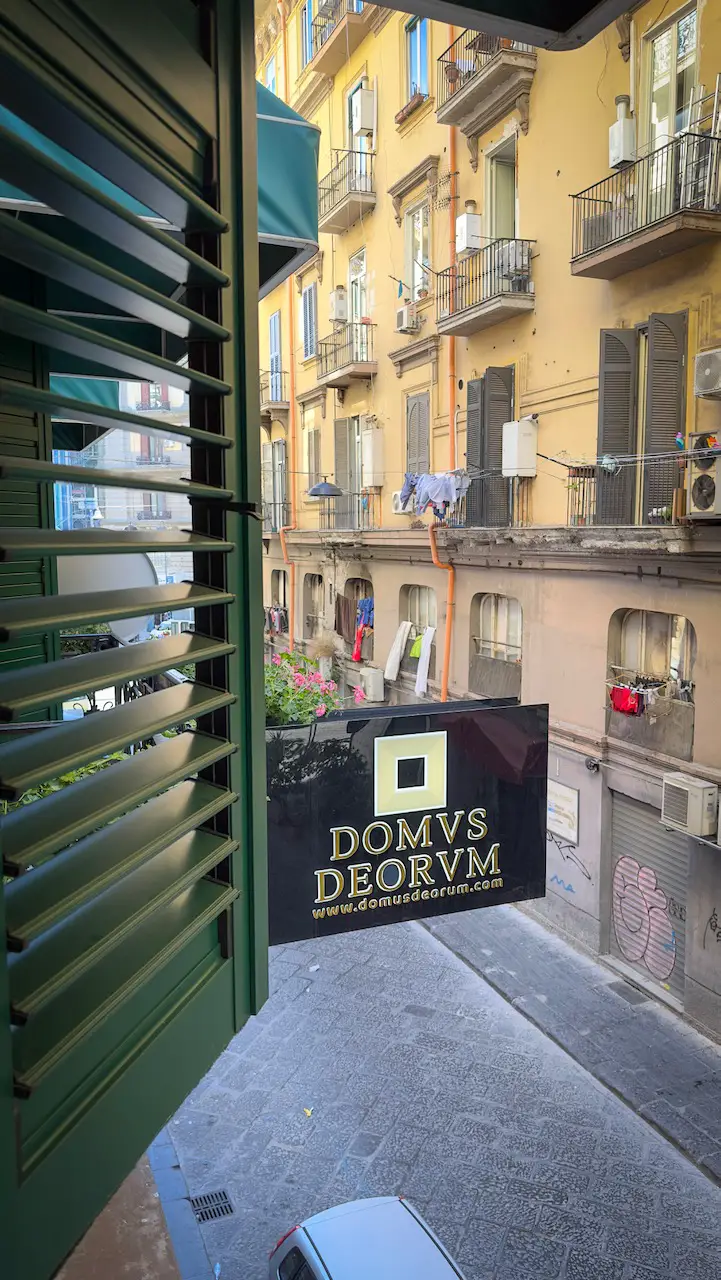Tucked away on a quiet side street yet just steps from Naples’ lively heartbeat, Domus Deorum Deluxe is a charming hideaway full of thoughtful touches. My “Vesuvio” room was all warm colors, elegant design, and well-planned comfort.