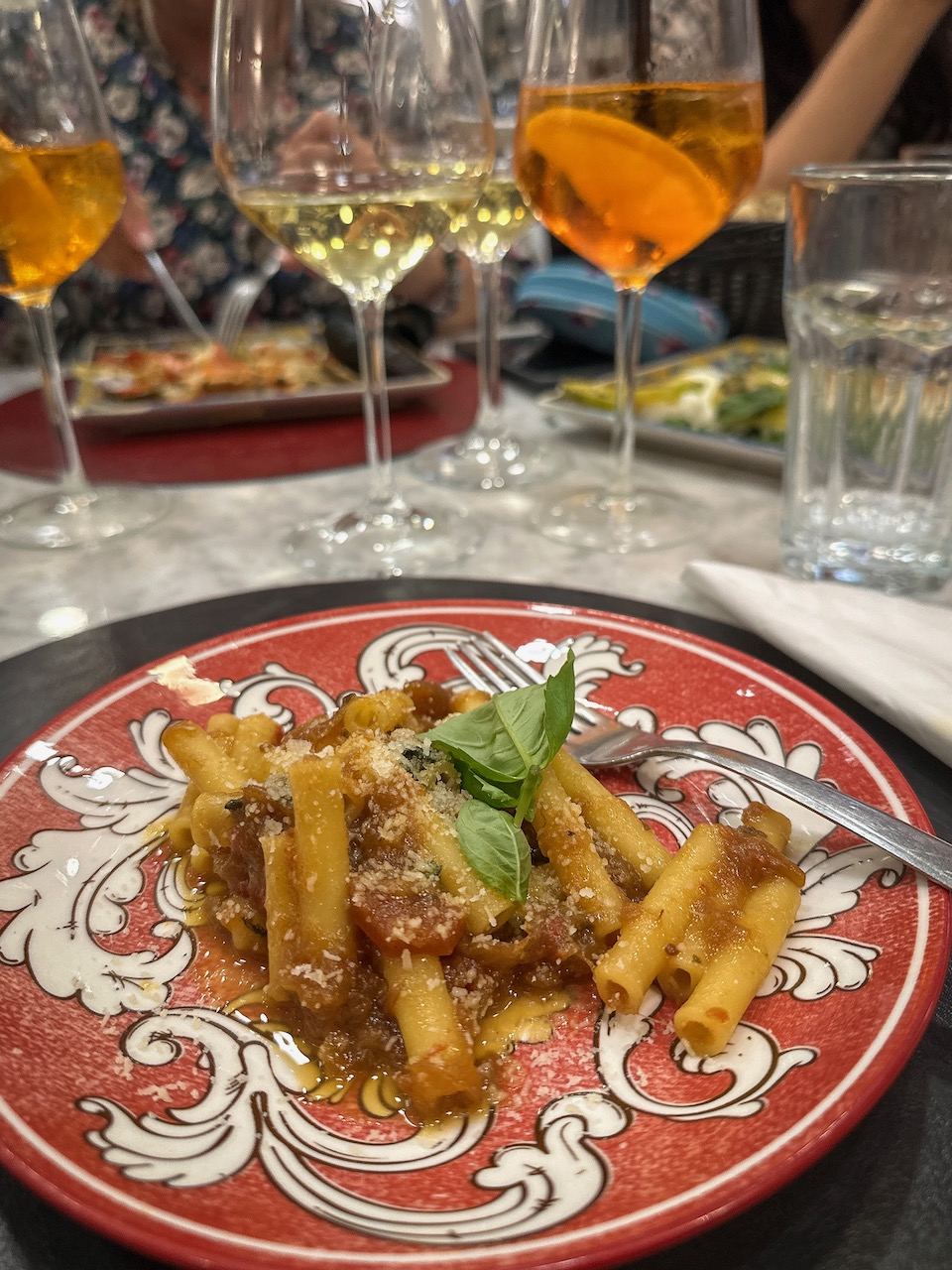 Luca, the owner, greets us with glasses of Laurent-Perrier champagne. Some of us switch it up with a perfectly mixed Pornstar Martini. As we chat about Naples, Luca’s favorite spots, and our shared love for great drinks, the mood becomes warm and easygoing. The night is mild, so we stand outside, laughing and swapping stories. It’s the perfect, unhurried way to close the day.